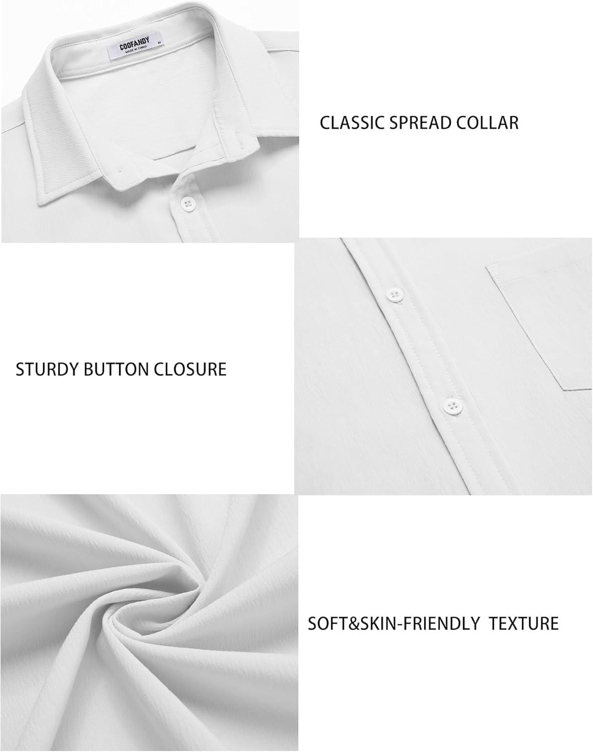 imageCOOFANDY Mens Casual Summer Beach Wrinkle Free Shirts Short Sleeve Button Down Lightweight Untucked Textured ShirtWhite