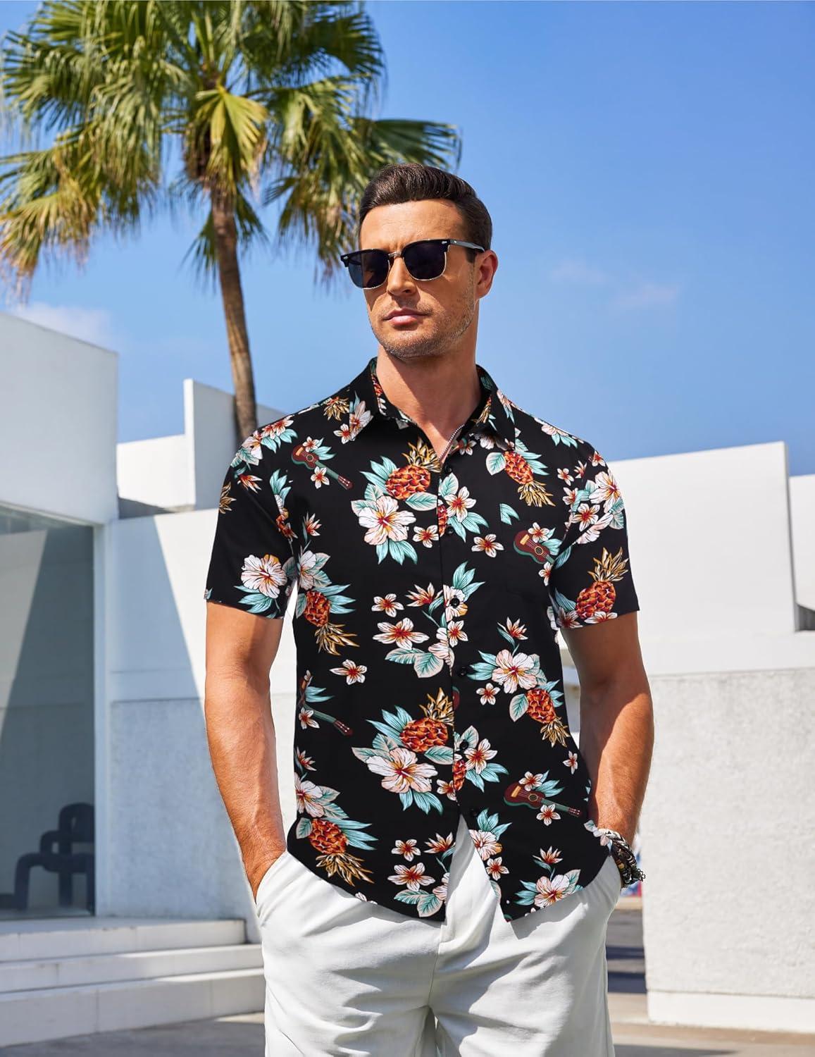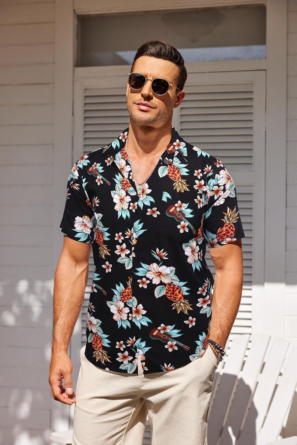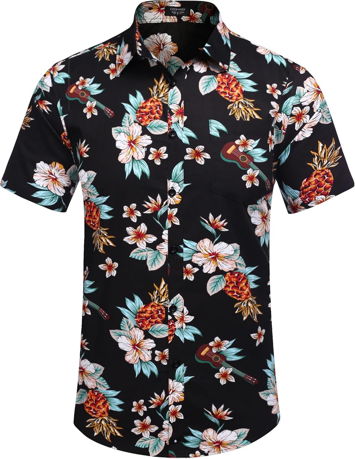 COOFANDY Men's Casual Summer Beach Wrinkle Free Shirts Short Sleeve Button Down Lightweight Untucked Textured Shirt(Z-pineapple)