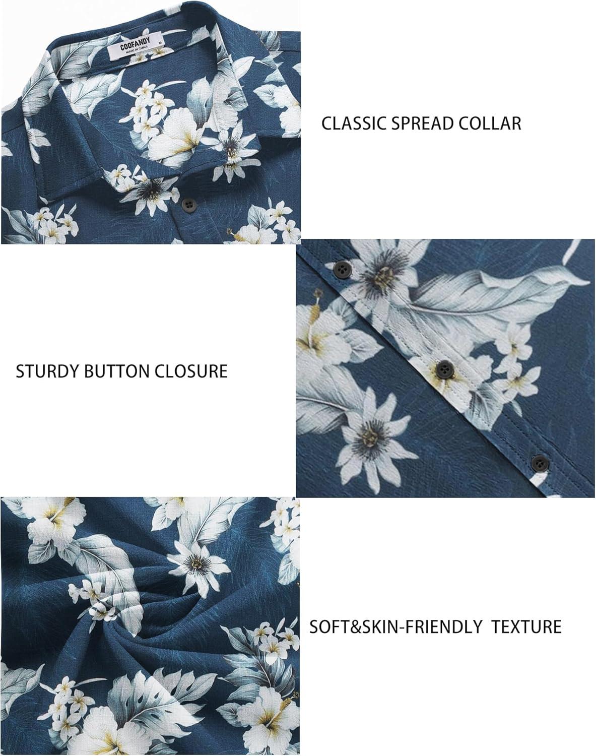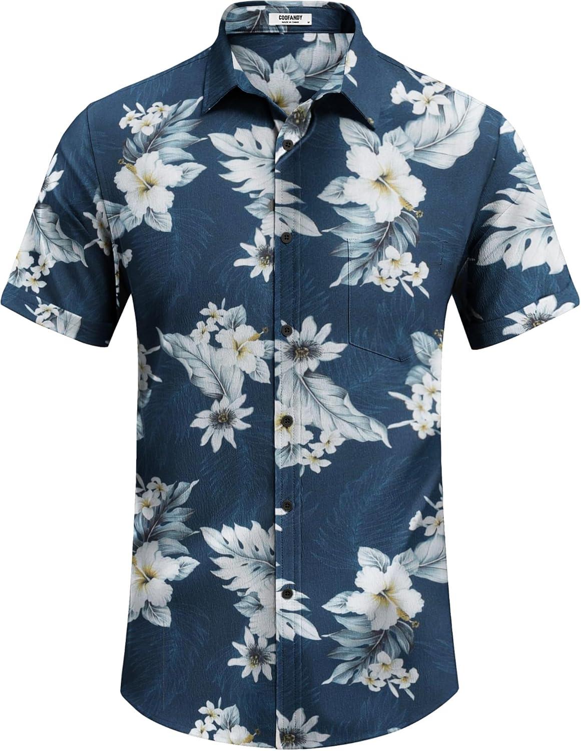 COOFANDY Men's Casual Summer Beach Wrinkle Free Shirts Short Sleeve Button Down Lightweight Untucked Textured Shirt(Z-rainforest)