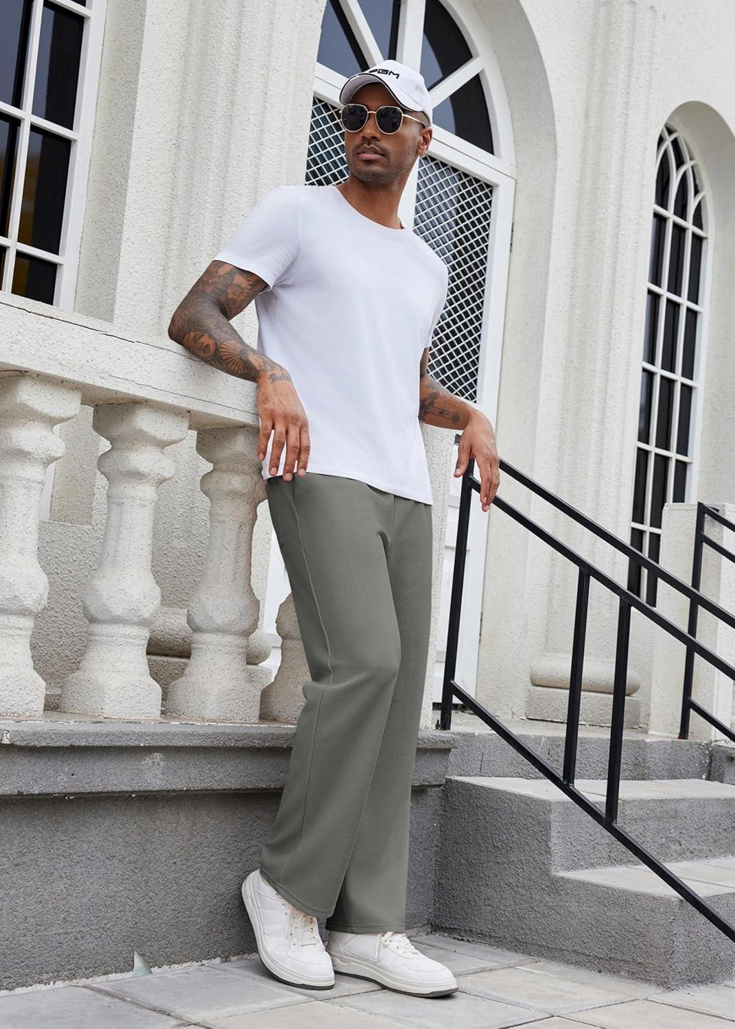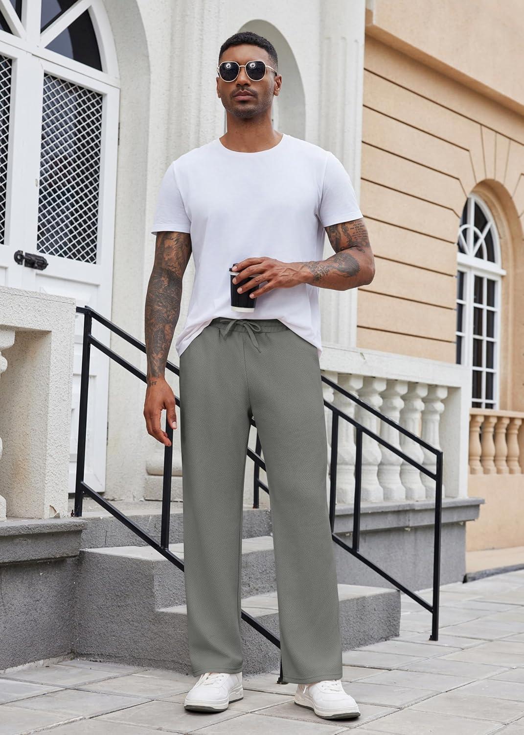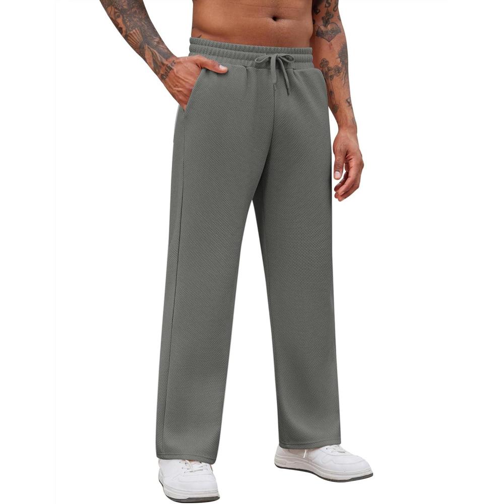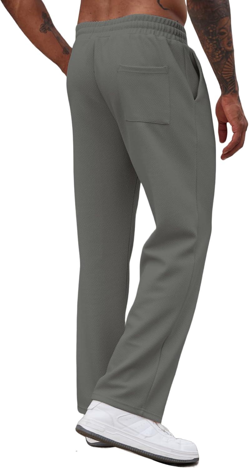 COOFANDY Men’s Casual Sweatpants Open Bottom Lounge Pants Drawstring Sweat Pants Joggers with Pockets(Light Grey)