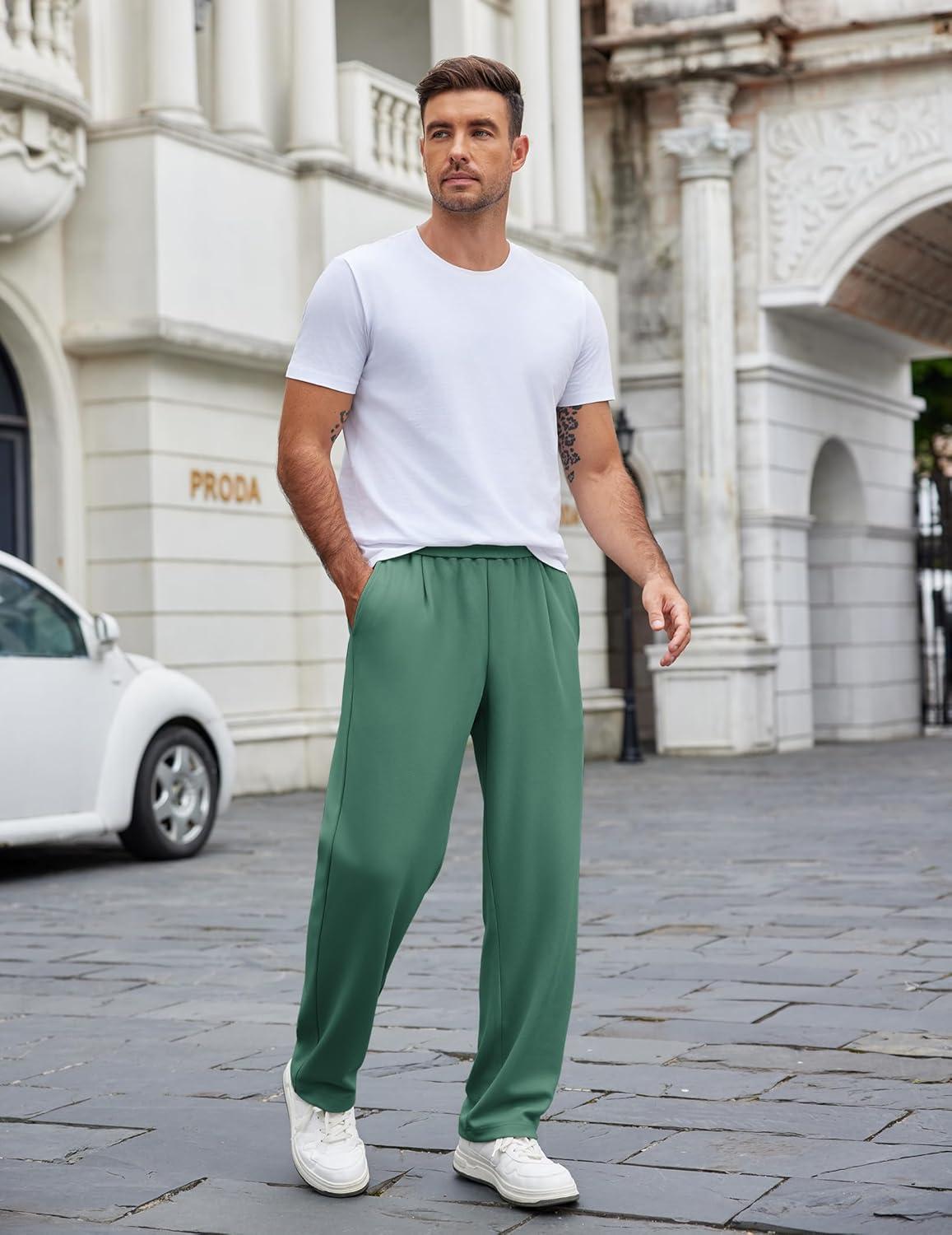 COOFANDY Mens Casual Sweatpants Open Bottom Lounge Pants Lightweight Baggy Workout Yoga Track Pants(Green)