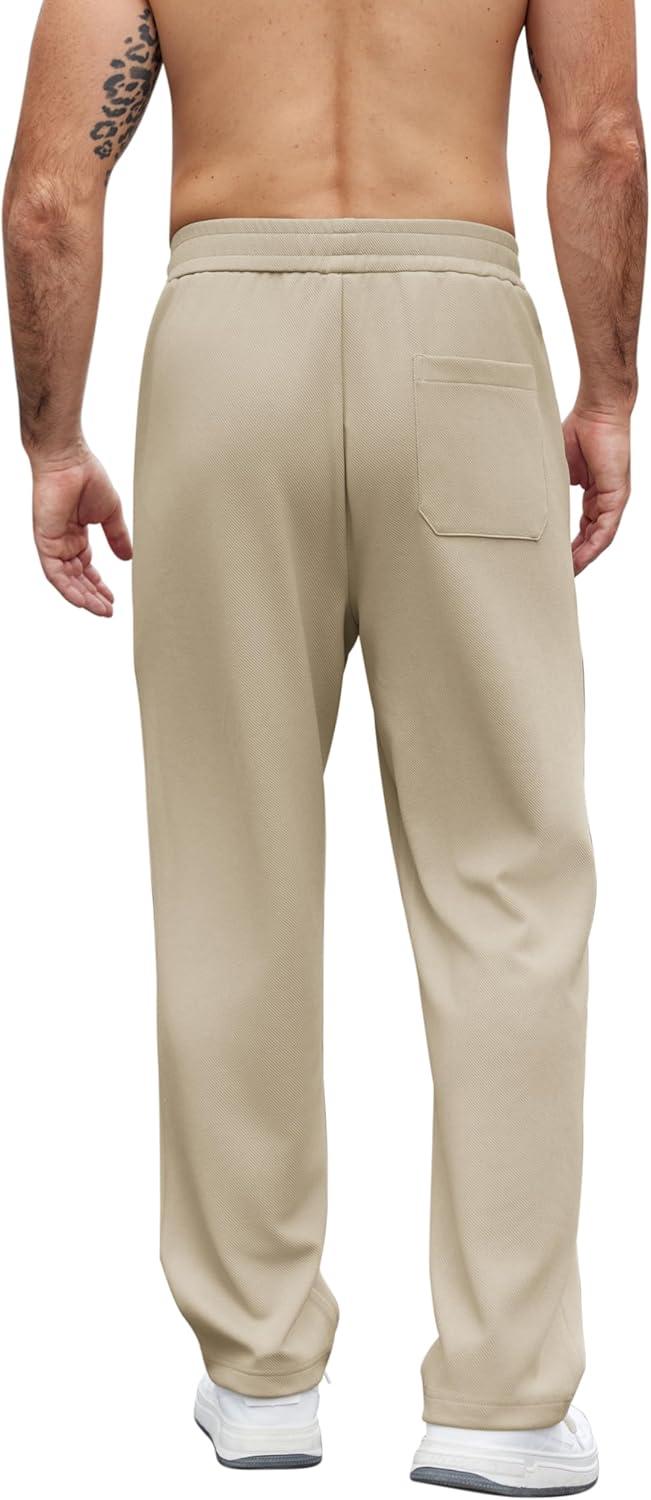 COOFANDY Mens Casual Sweatpants Open Bottom Lounge Pants Lightweight Baggy Workout Yoga Track Pants(Beige)