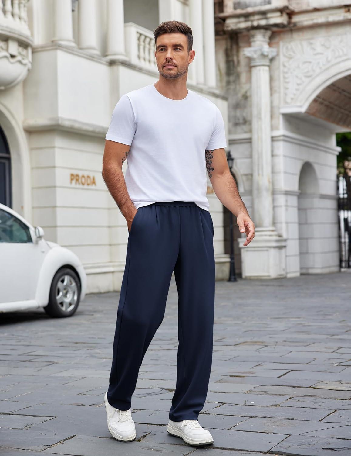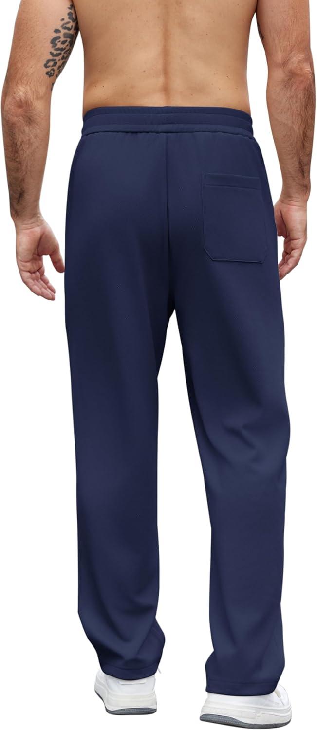 COOFANDY Mens Casual Sweatpants Open Bottom Lounge Pants Lightweight Baggy Workout Yoga Track Pants(Navy Blue)