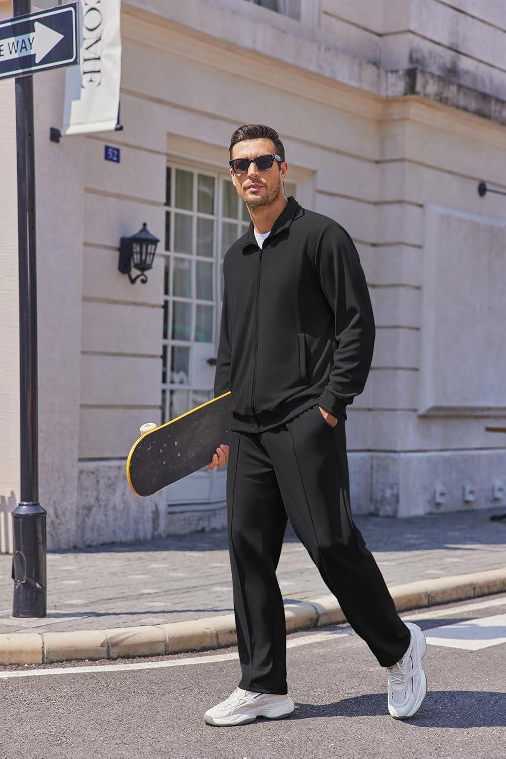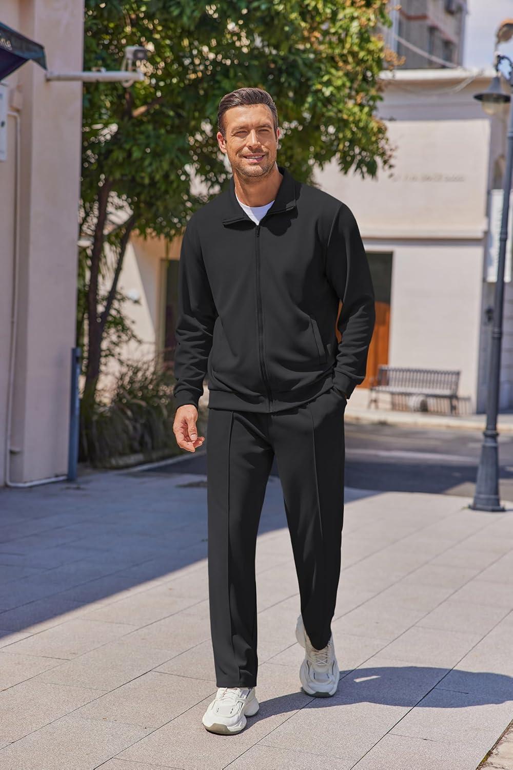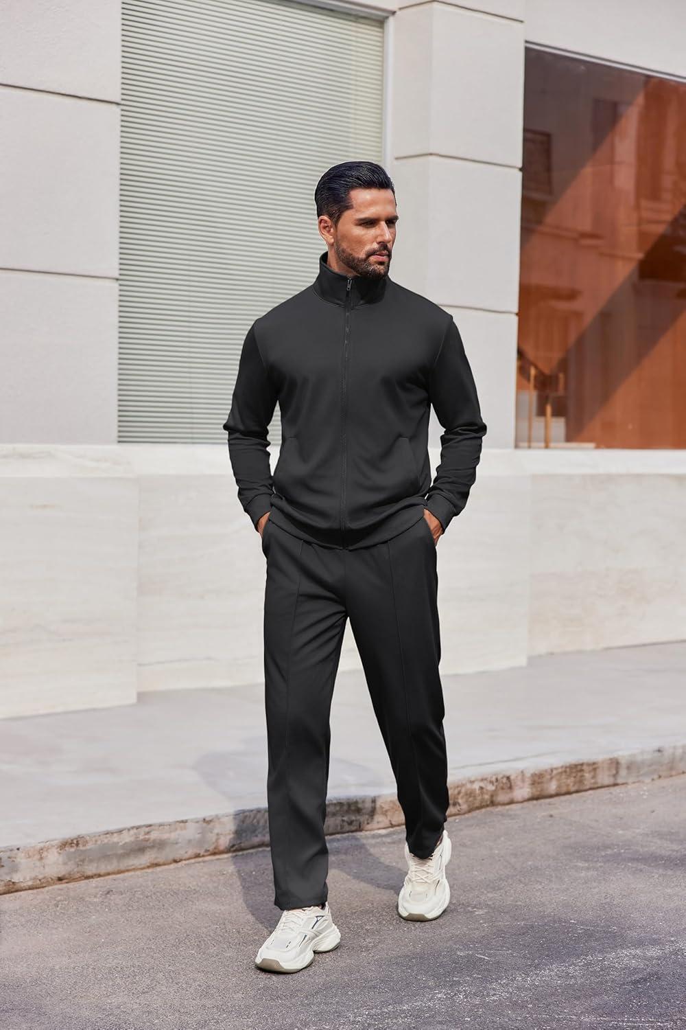 COOFANDY Men’s Casual Sweatsuit 2 Piece Athletic Full Zip Tracksuit Jacquard Jogging Set Fashion Jackets And Pants Outfit(Black)