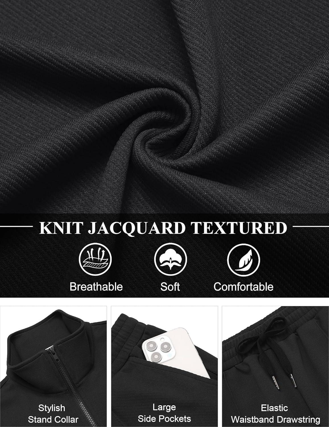 COOFANDY Men's Casual Sweatsuit 2 Piece Athletic Full Zip Tracksuit Jacquard Jogging Set Fashion Jackets And Pants Outfit(Black)