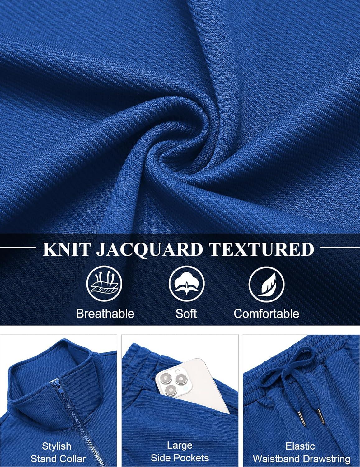 COOFANDY Men's Casual Sweatsuit 2 Piece Athletic Full Zip Tracksuit Jacquard Jogging Set Fashion Jackets And Pants Outfit(Blue)