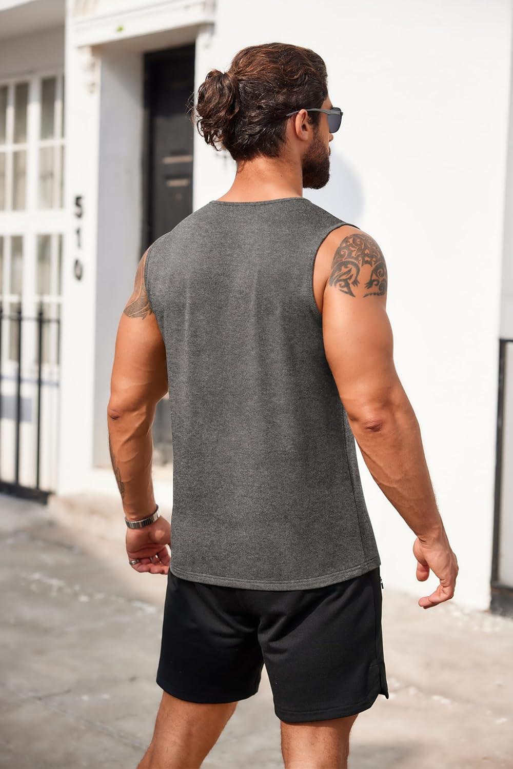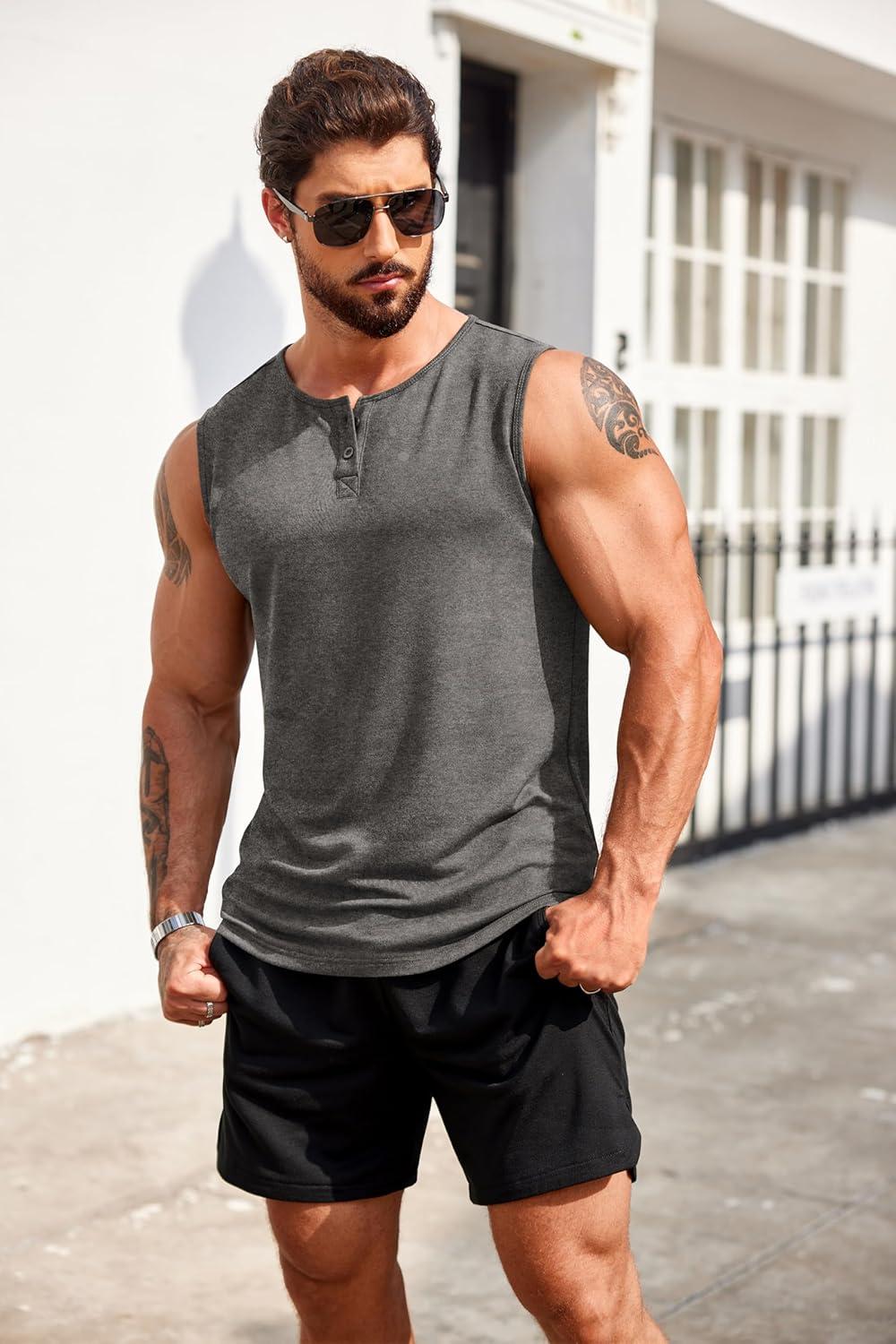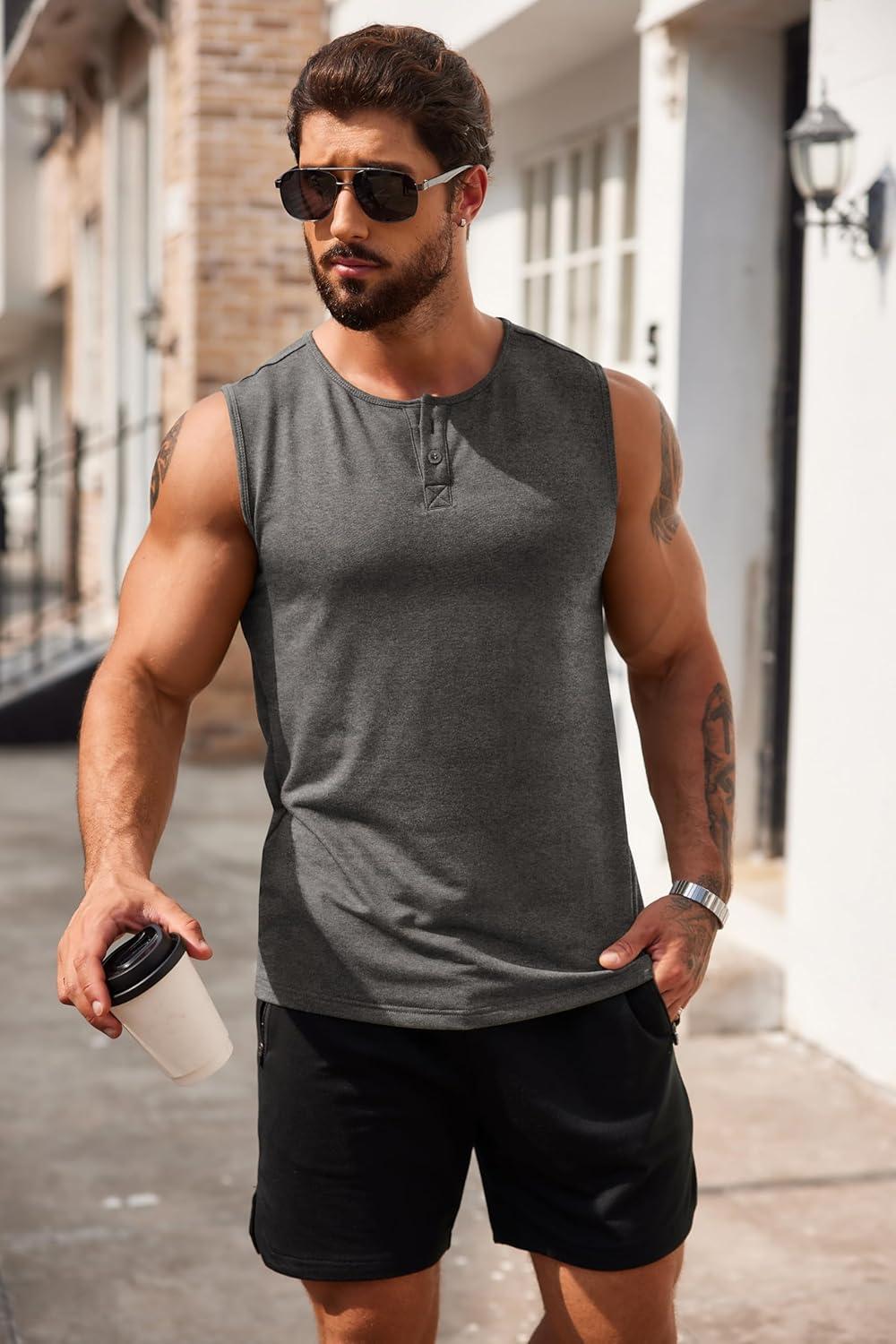 COOFANDY Men's Casual Tank Top Sleeveless Henley Shirts Muscle Fit T Shirt(01-dark Grey(1pcs))