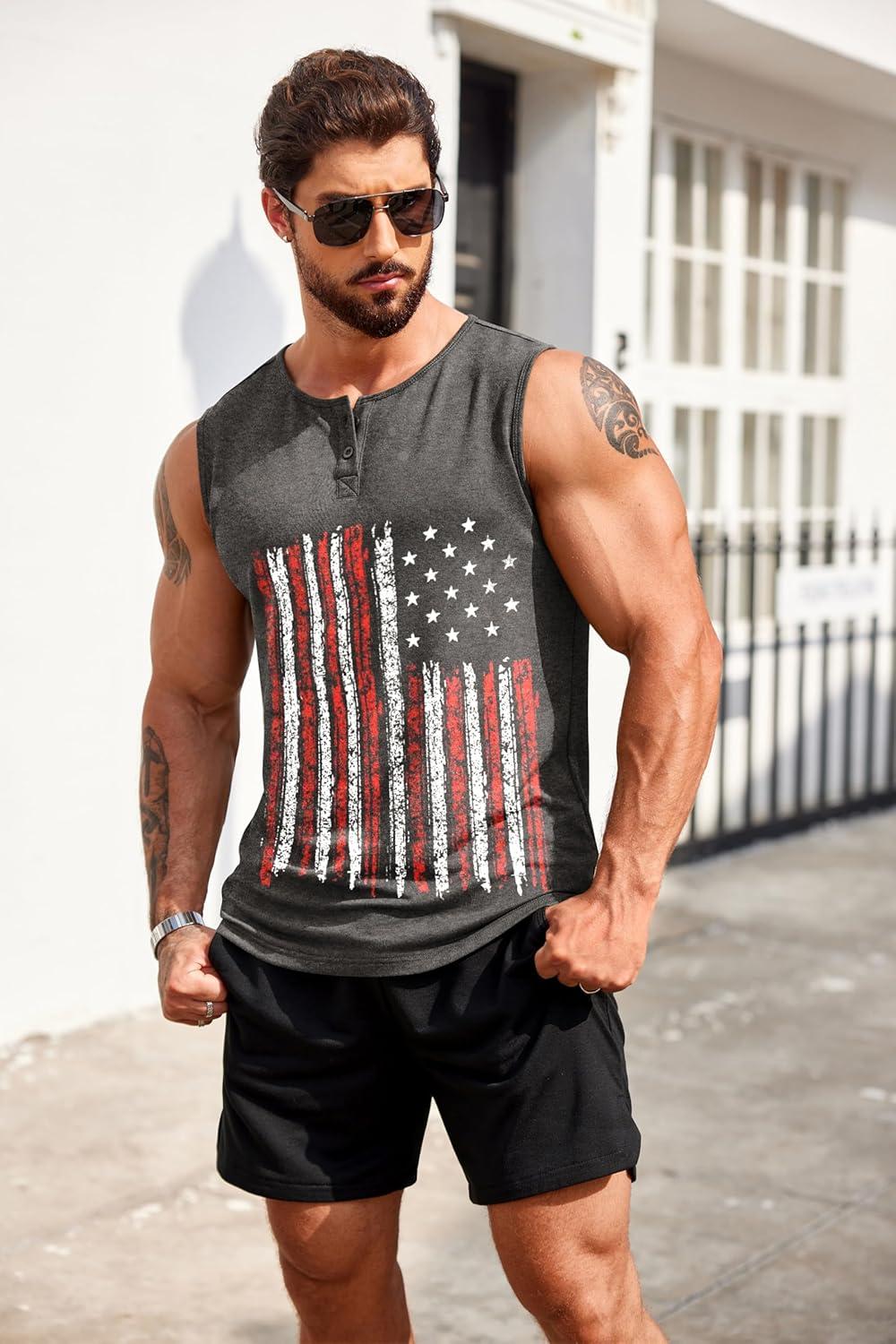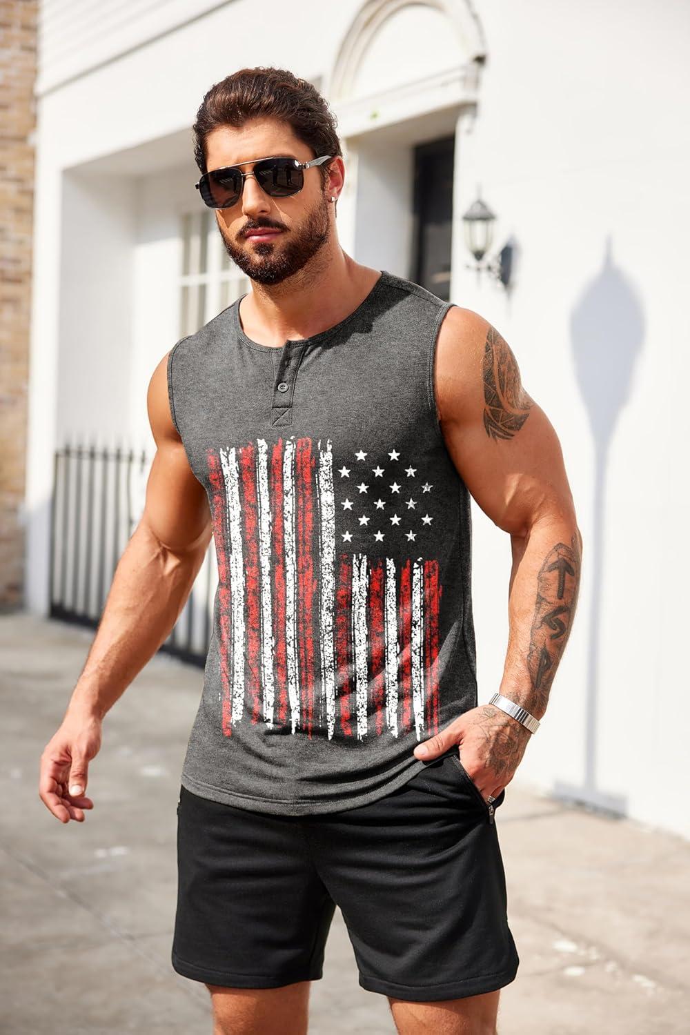 COOFANDY Men's Casual Tank Top Sleeveless Henley Shirts Muscle Fit T Shirt(01-usa Flag 01(1pcs))