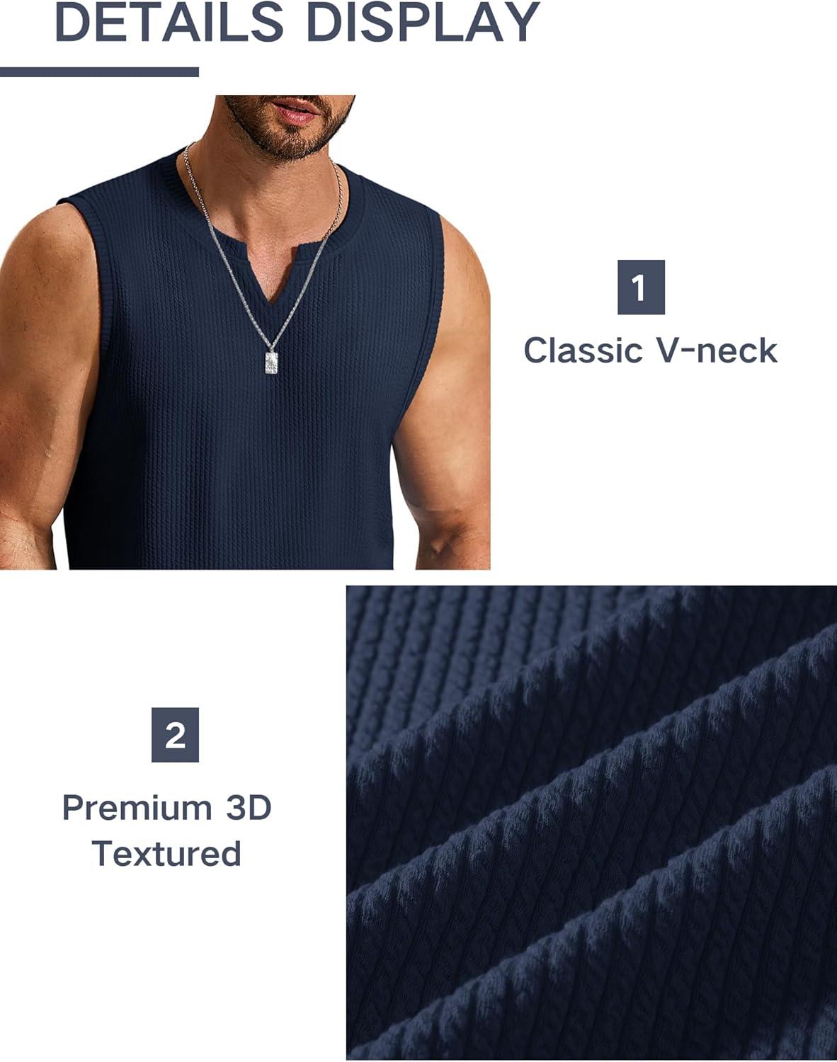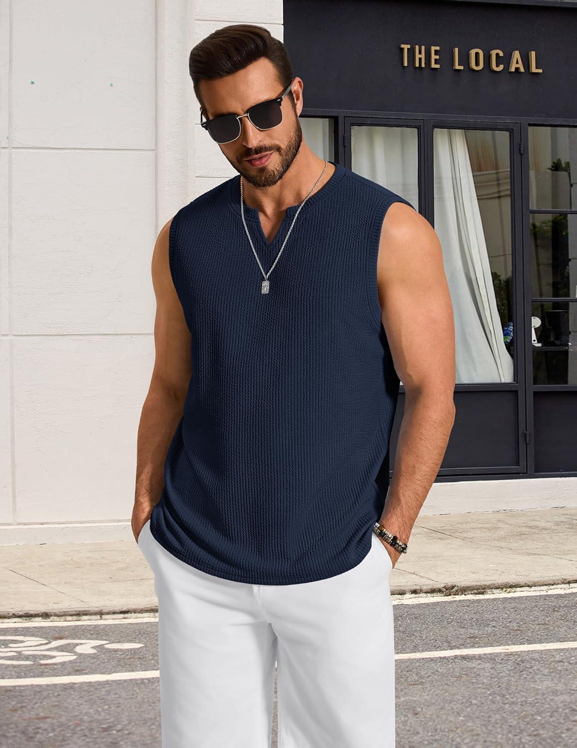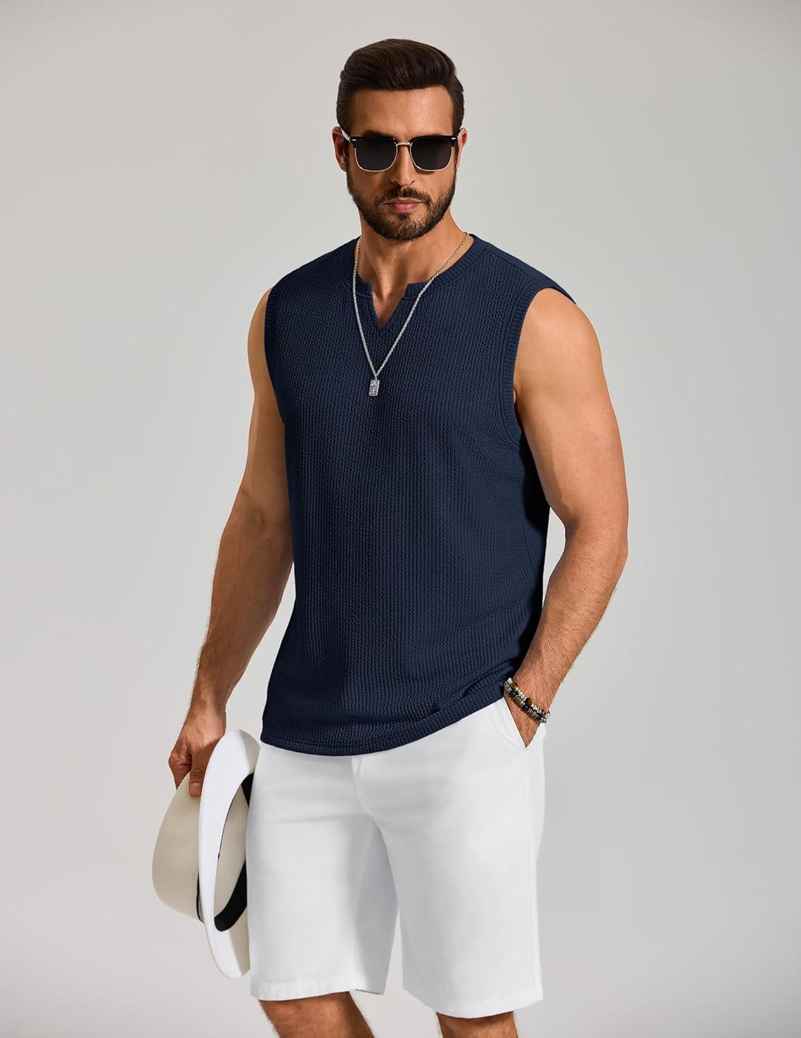 COOFANDY Mens Casual Tank Top V Neck Knit Jacquard Sleeveless T Shirts Lightweight Summer Beach Textured Tank(Navy Blue)
