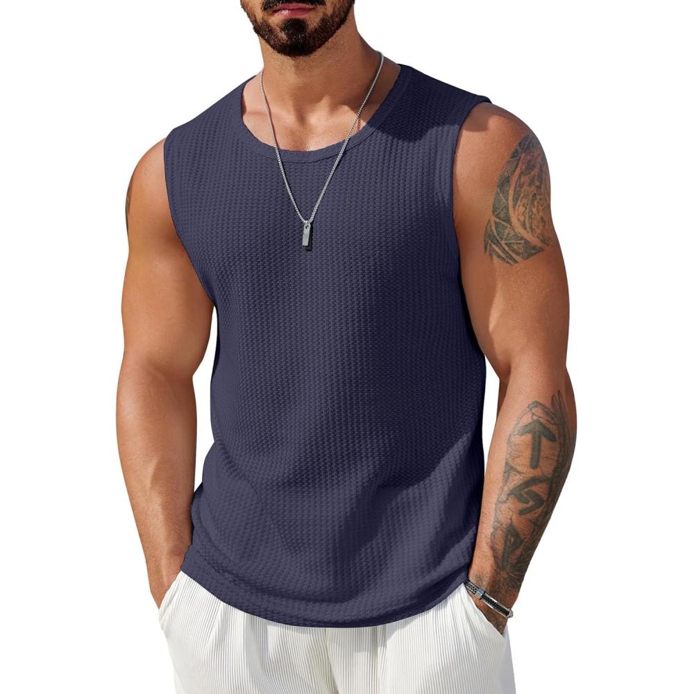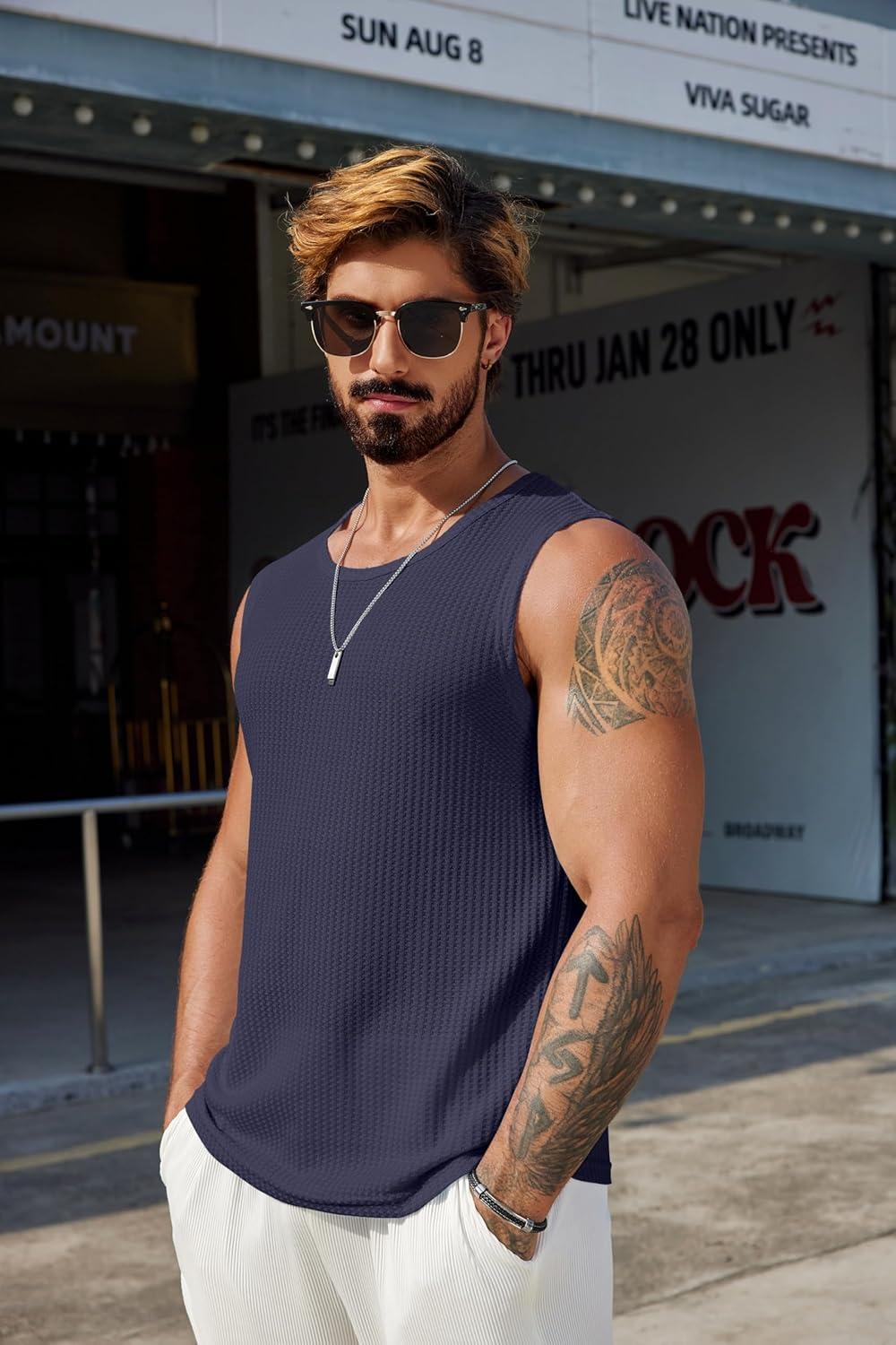 COOFANDY Mens Casual Tank Tops 2 Pack Waffle Knit Sleeveless Shirt Breathable Tank Shirts Summer Muscle Tee(Navy)