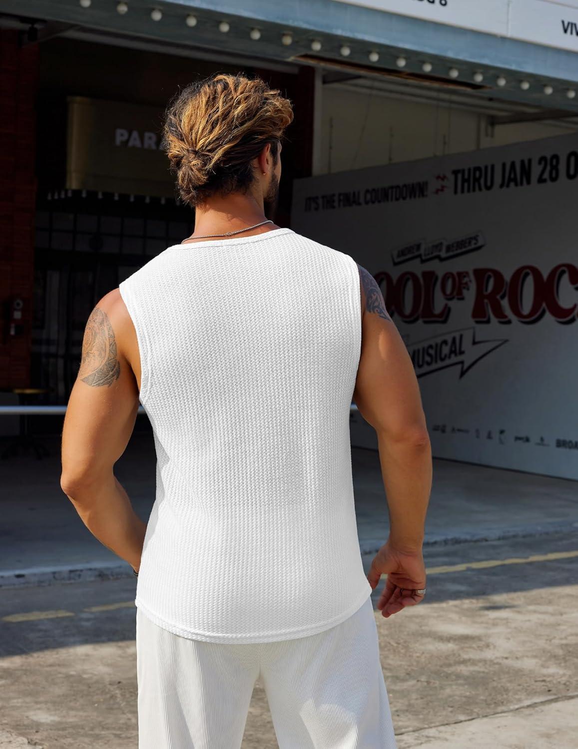 imageCOOFANDY Mens Casual Tank Tops 2 Pack Waffle Knit Sleeveless Shirt Breathable Tank Shirts Summer Muscle TeeWhite