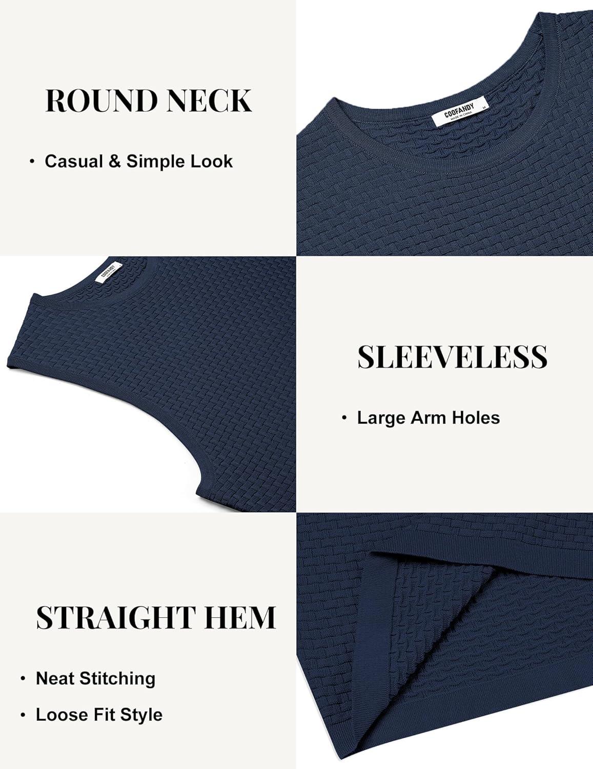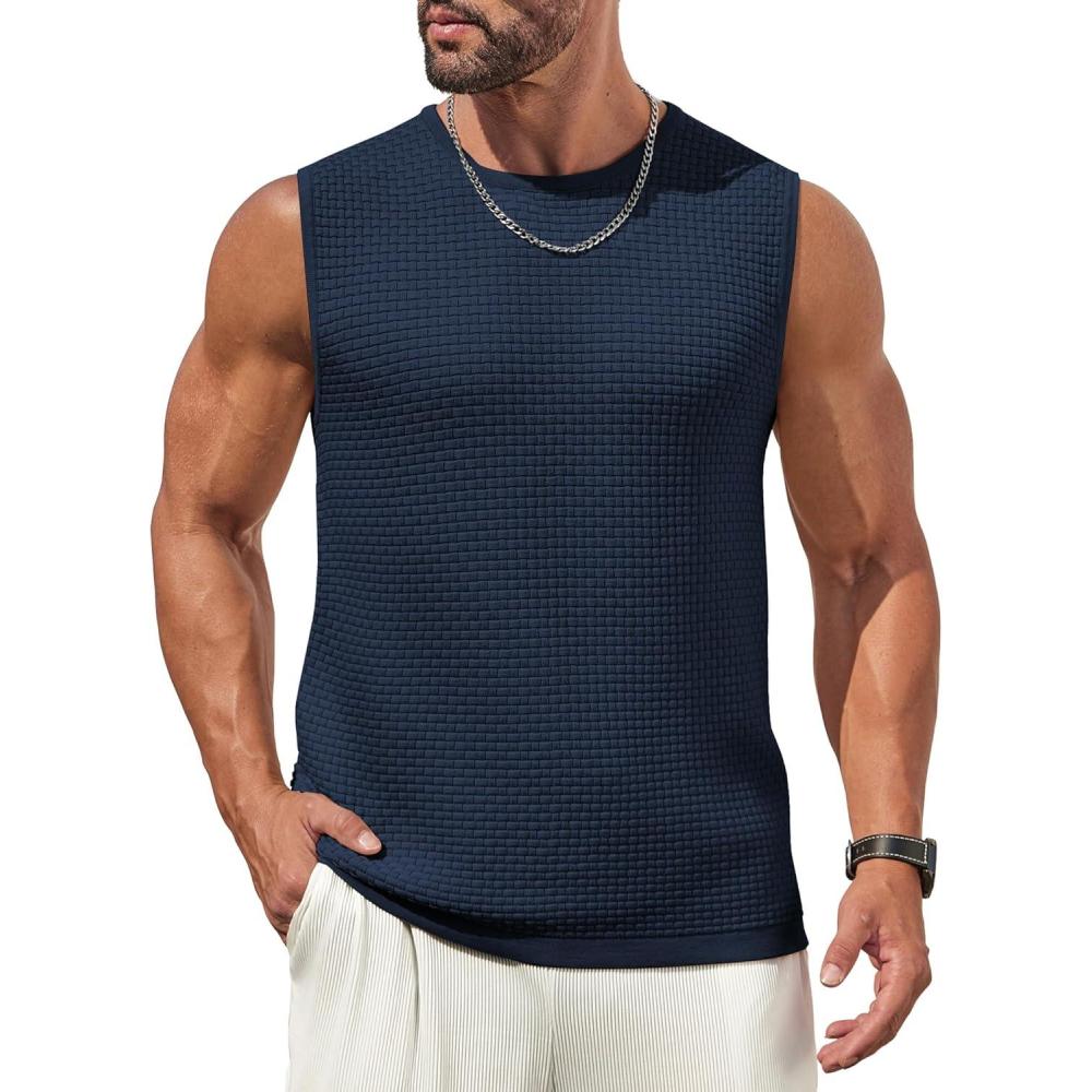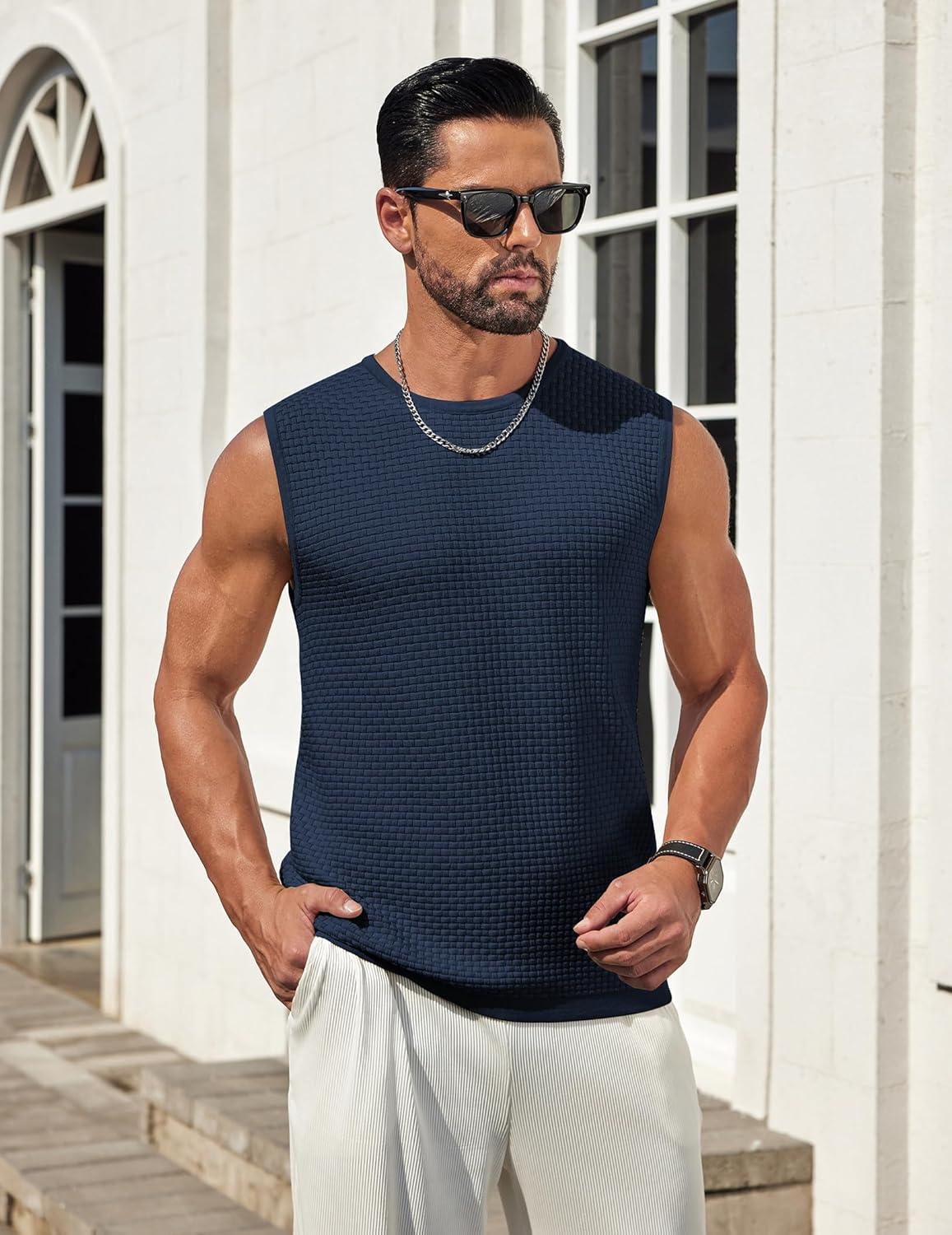 COOFANDY Men's Casual Tank Tops Knit Sleeveless Shirt Summer Beach Tank Shirt Breathable Muscle T Shirts(Navy Blue)
