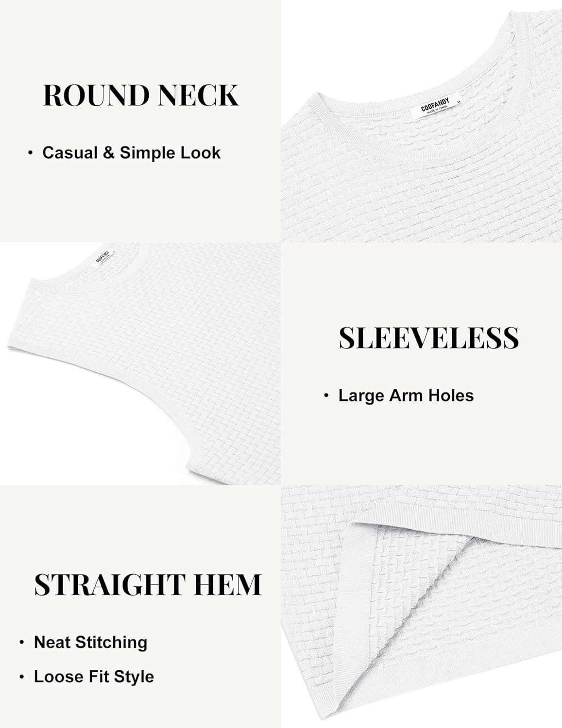 COOFANDY Men’s Casual Tank Tops Knit Sleeveless Shirt Summer Beach Tank Shirt Breathable Muscle T Shirts(White)