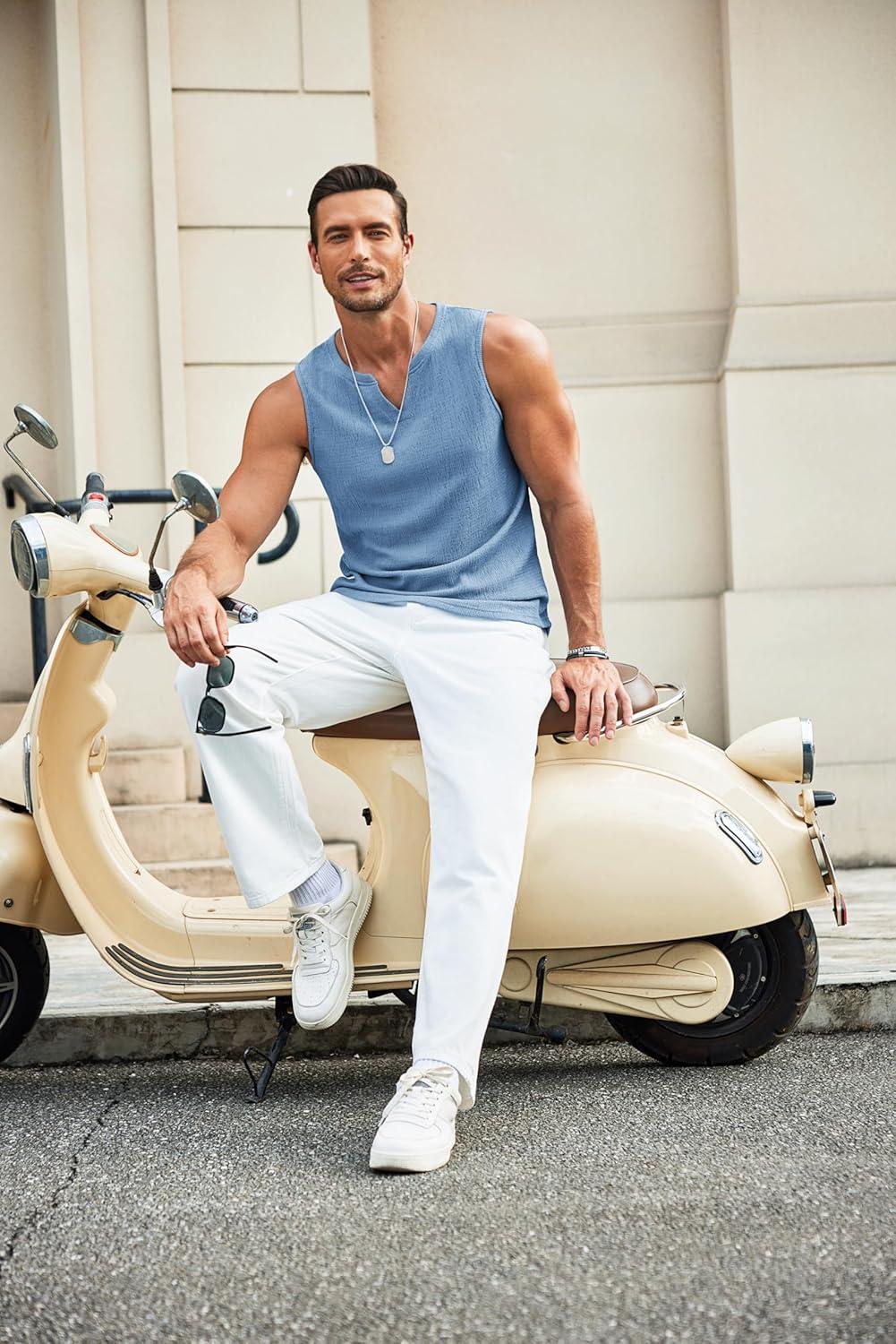 COOFANDY Men’s Casual Tank Tops Knit V Neck Sleeveless T Shirts 2 Pack Summer Beach Lightweight Muscle Tee(White)