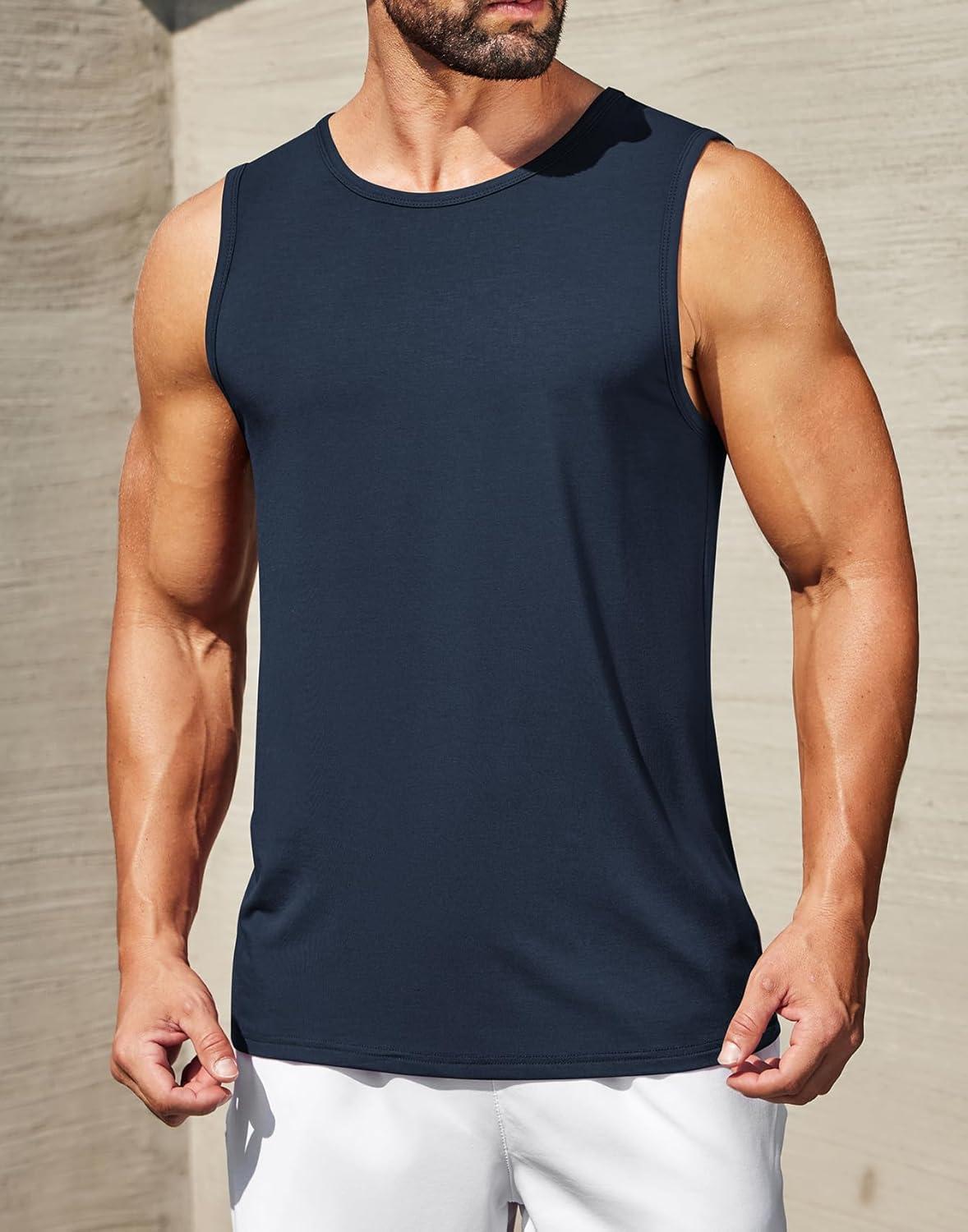 COOFANDY Mens Casual Tank Tops Moisture Wicking Muscle Sleeveless Shirts Soft Bamboo Viscose Tank Shirt 2 Pack(Blue/Navy Blue)
