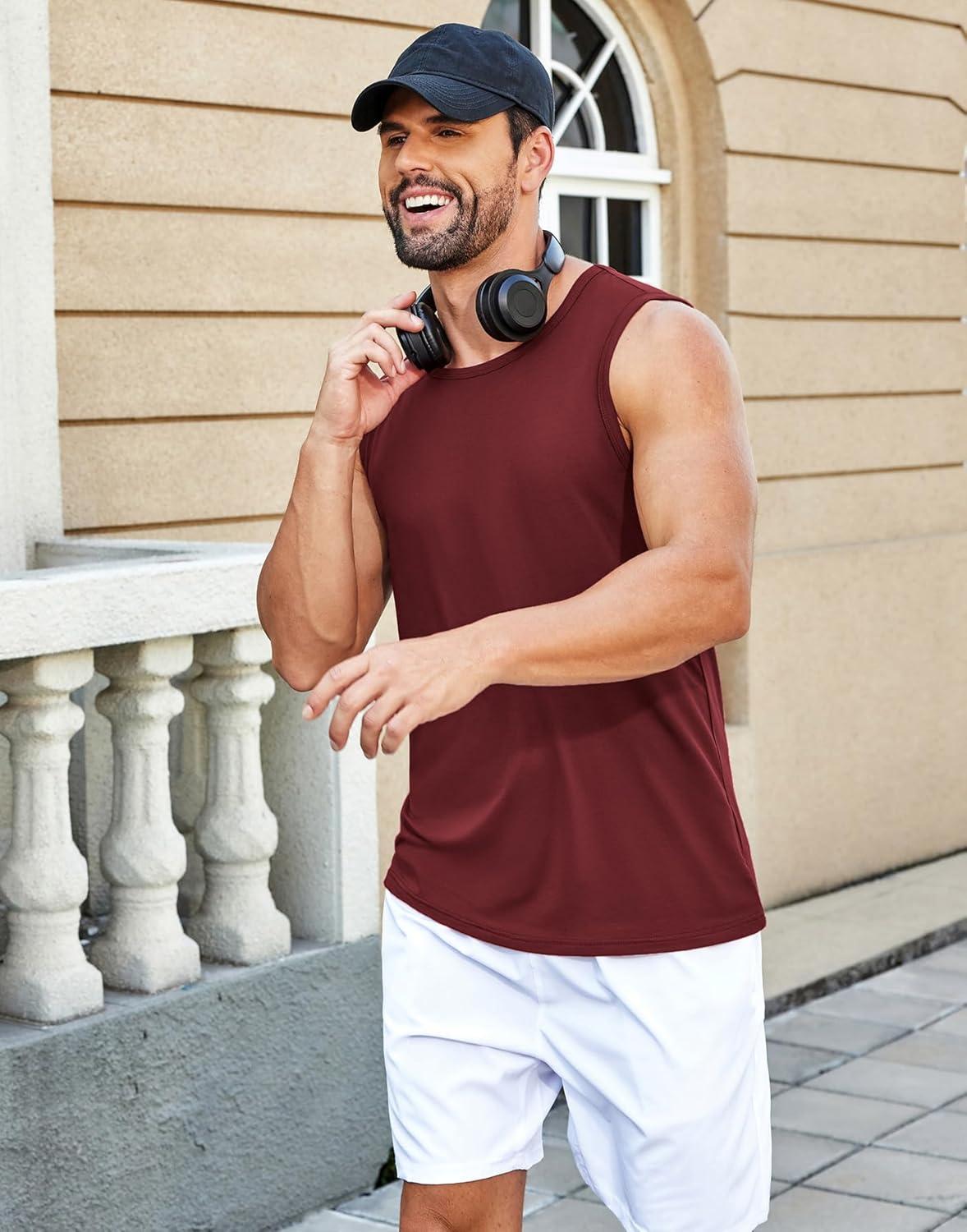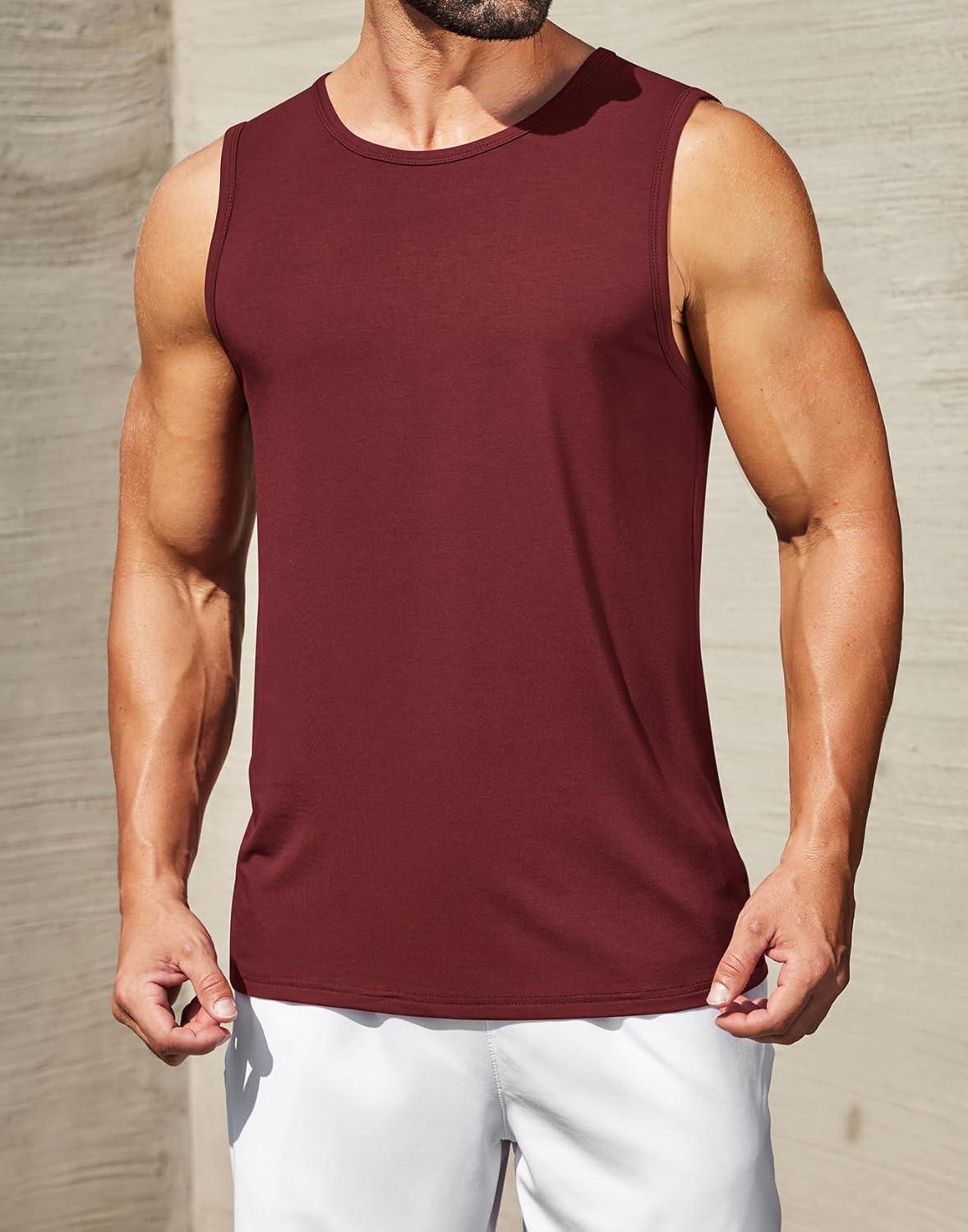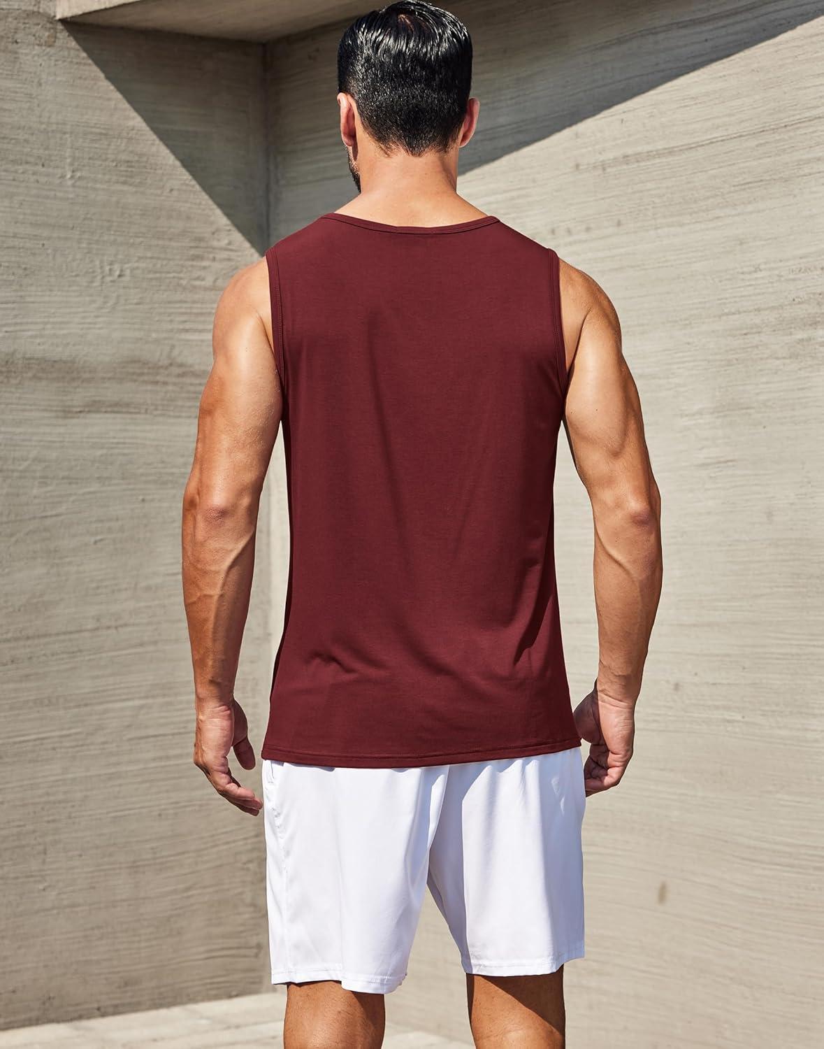 COOFANDY Mens Casual Tank Tops Moisture Wicking Muscle Sleeveless Shirts Soft Bamboo Viscose Tank Shirt 2 Pack(Blue/Wine Red)
