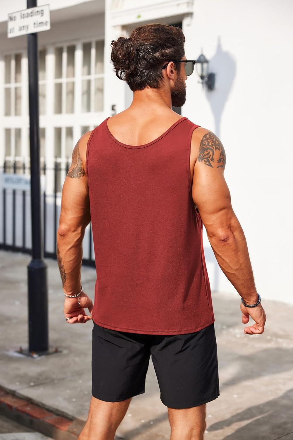 COOFANDY Men's Casual Tank Tops Sleeveless Beach Muscle T Shirts Summer Fashion Tank Shirt(Red)