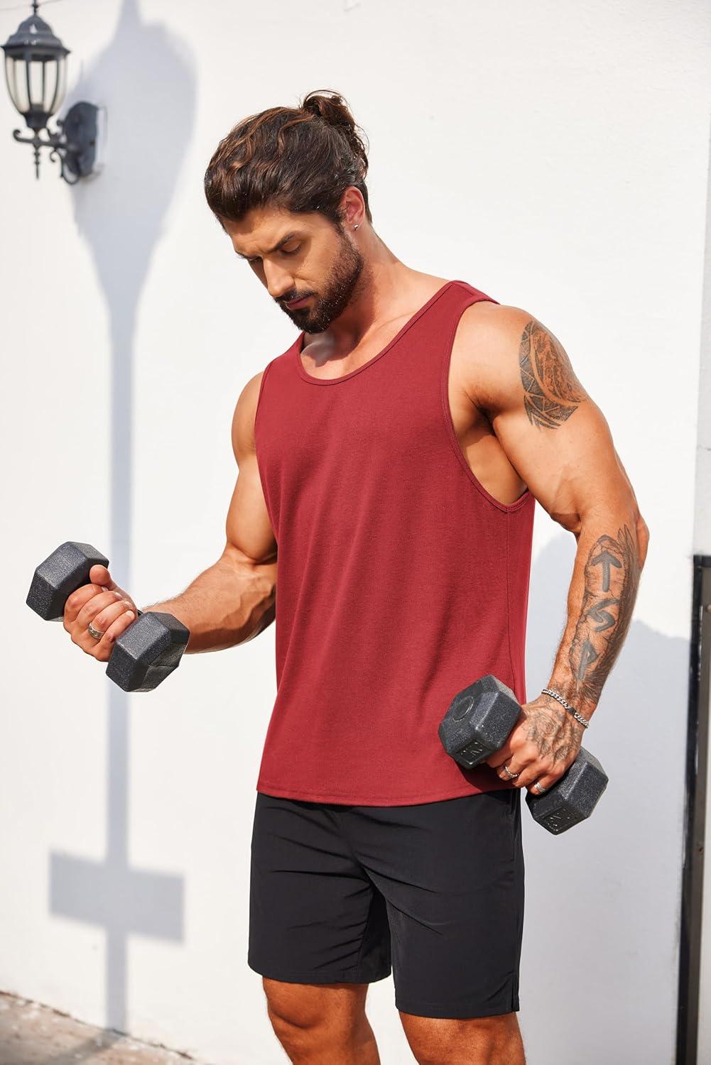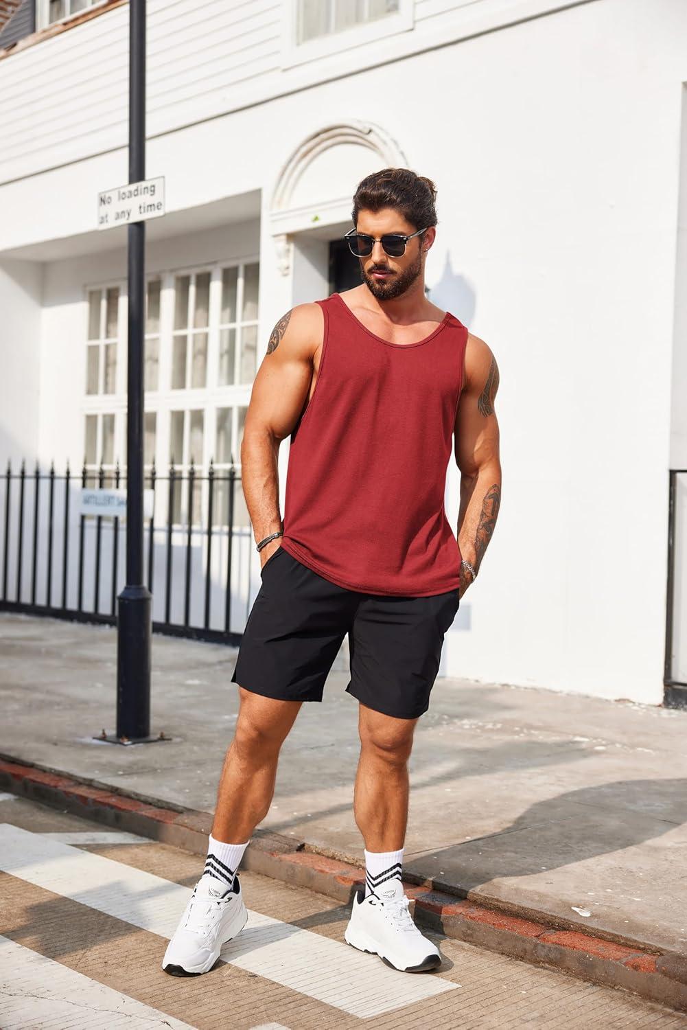 COOFANDY Men’s Casual Tank Tops Sleeveless Beach Muscle T Shirts Summer Fashion Tank Shirt(Red)