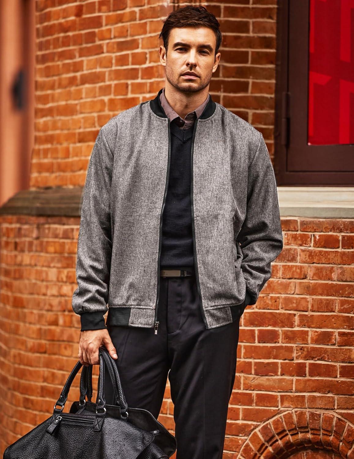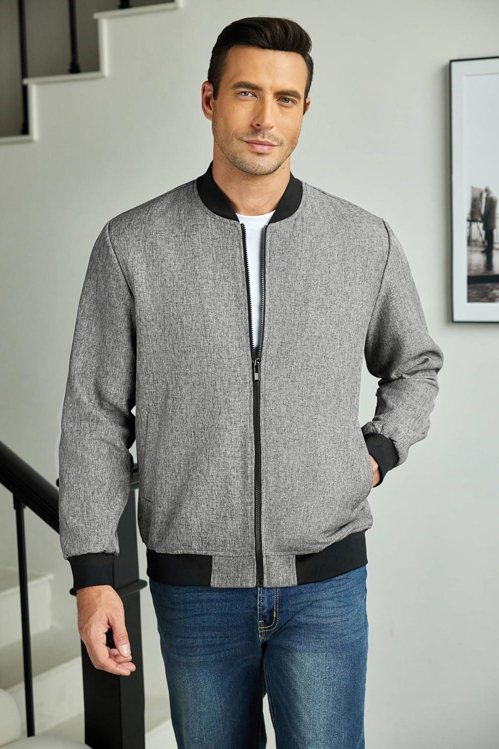 COOFANDY Men's Casual Varsity Jacket Vintage Lightweight Bomber Jackets Zip Up Fashion Coat(Gray)