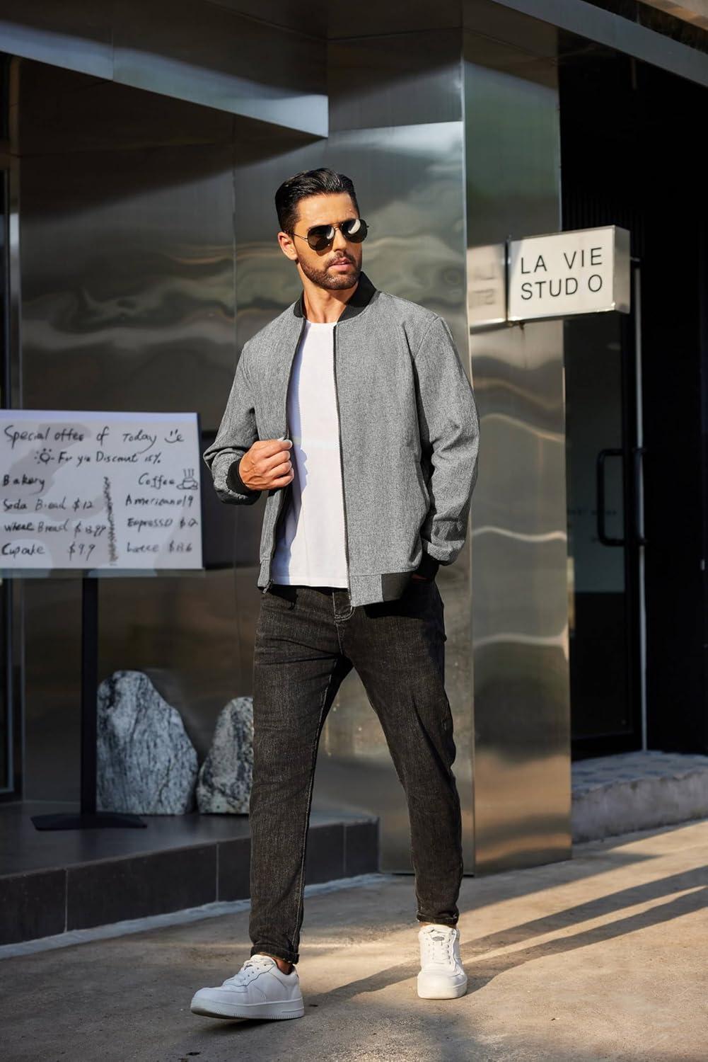 Get your hands on our exclusive COOFANDY Men’s Casual Varsity Jacket Vintage Lightweight Bomber Jackets Zip Up Fashion Coat(Gray) collection, now at a discounted price.