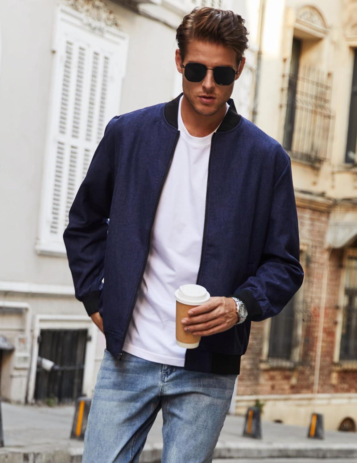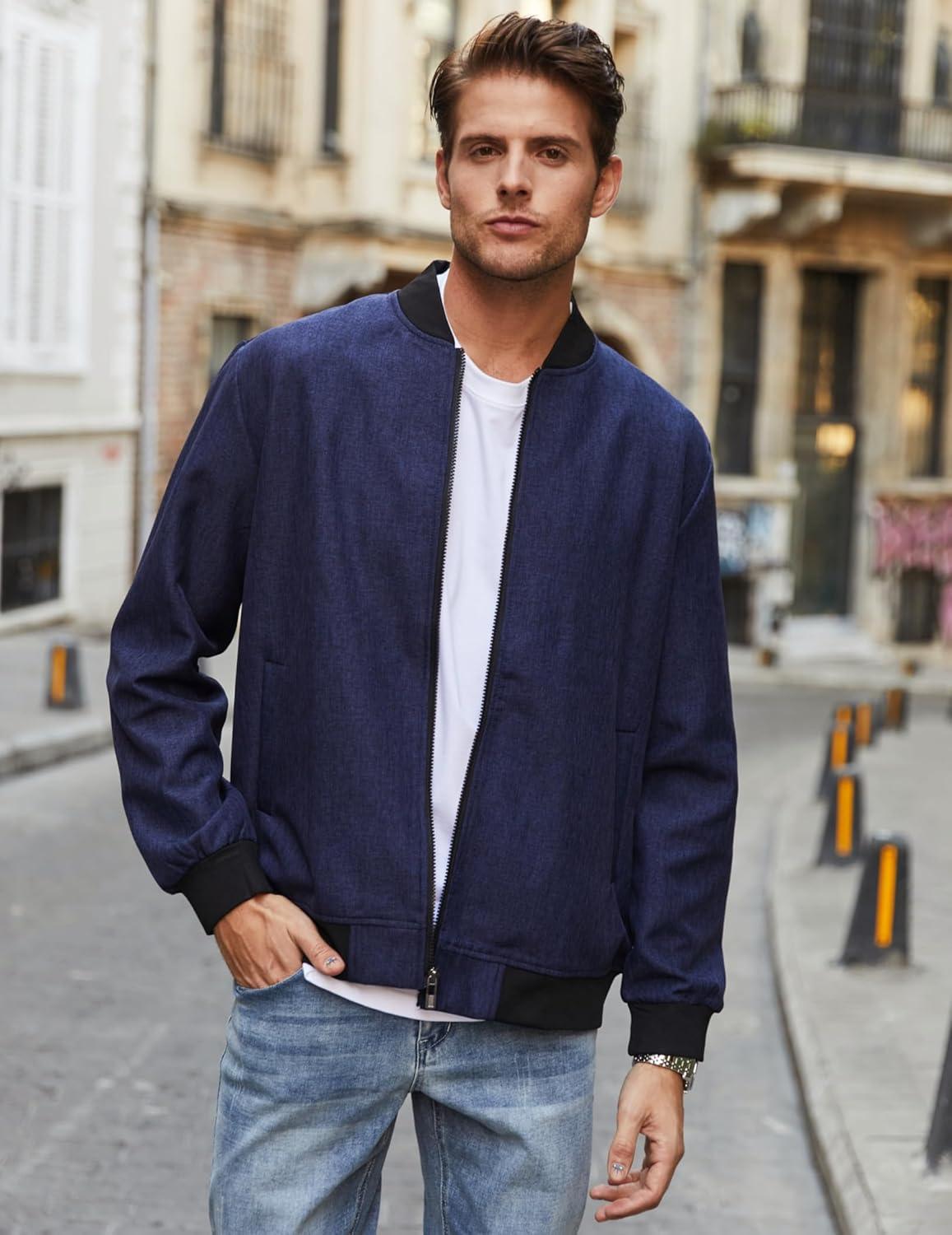 COOFANDY Men's Casual Varsity Jacket Vintage Lightweight Bomber Jackets Zip Up Fashion Coat(Navy Blue)