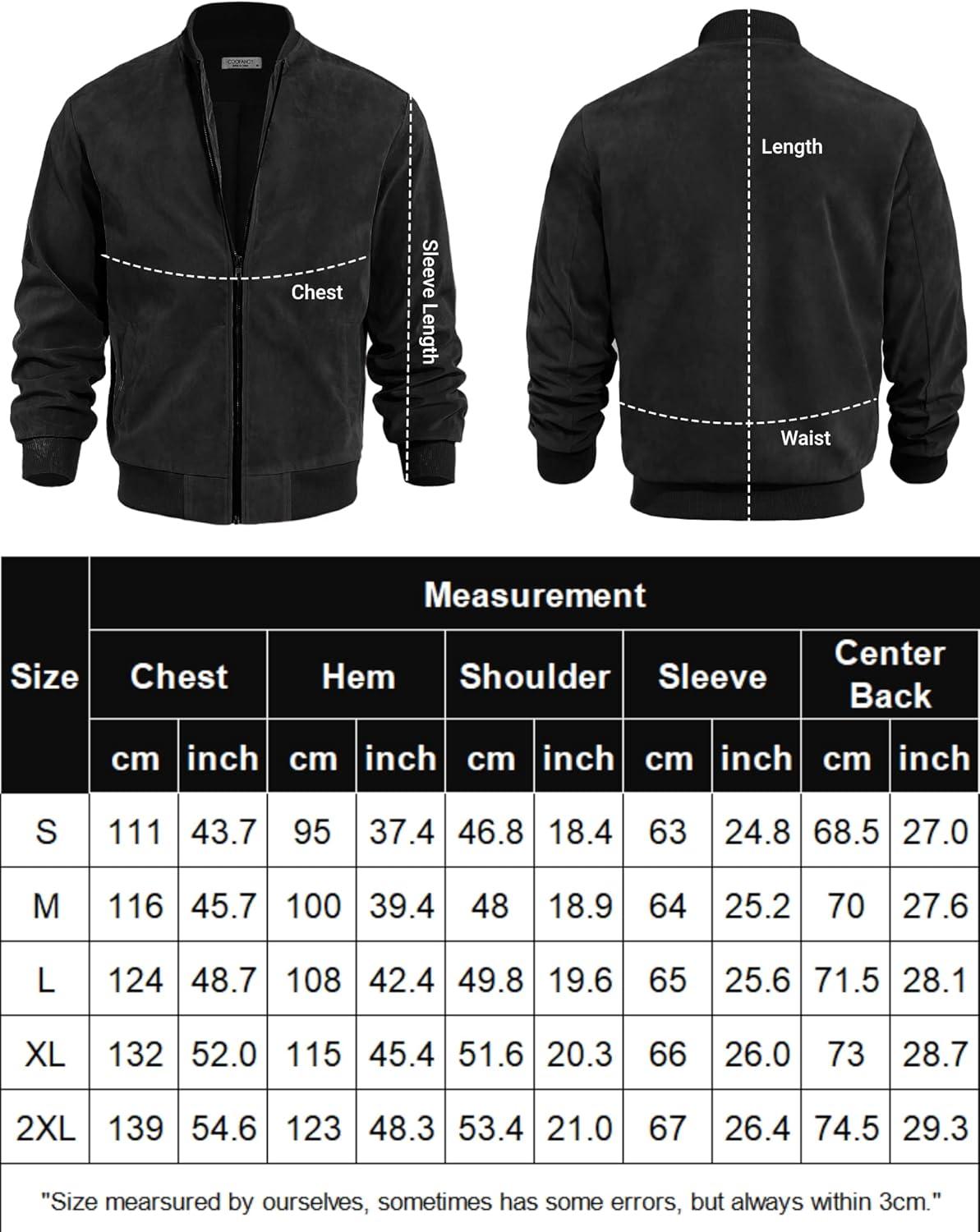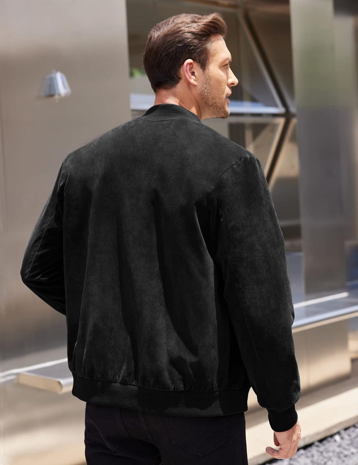 COOFANDY Men’s Casual Varsity Jacket Vintage Lightweight Suede Bomber Jackets(Black)