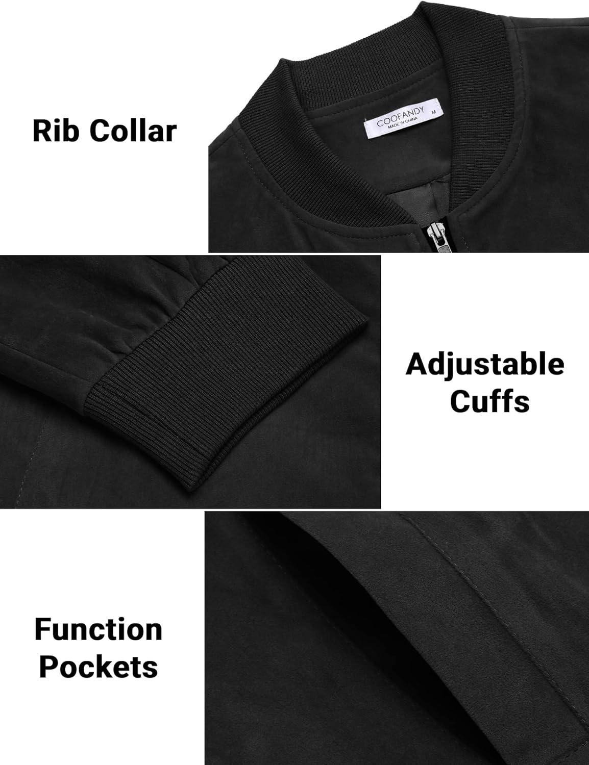 COOFANDY Men's Casual Varsity Jacket Vintage Lightweight Suede Bomber Jackets(Black)