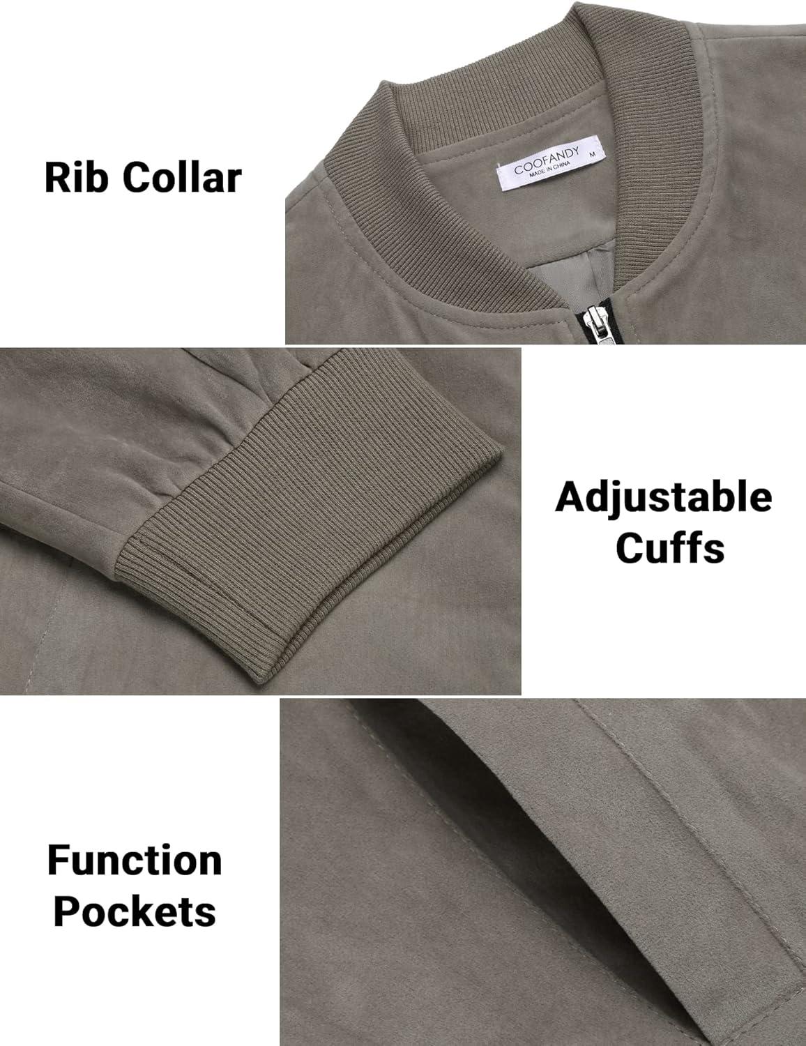 COOFANDY Men's Casual Varsity Jacket Vintage Lightweight Suede Bomber Jackets(Grey)