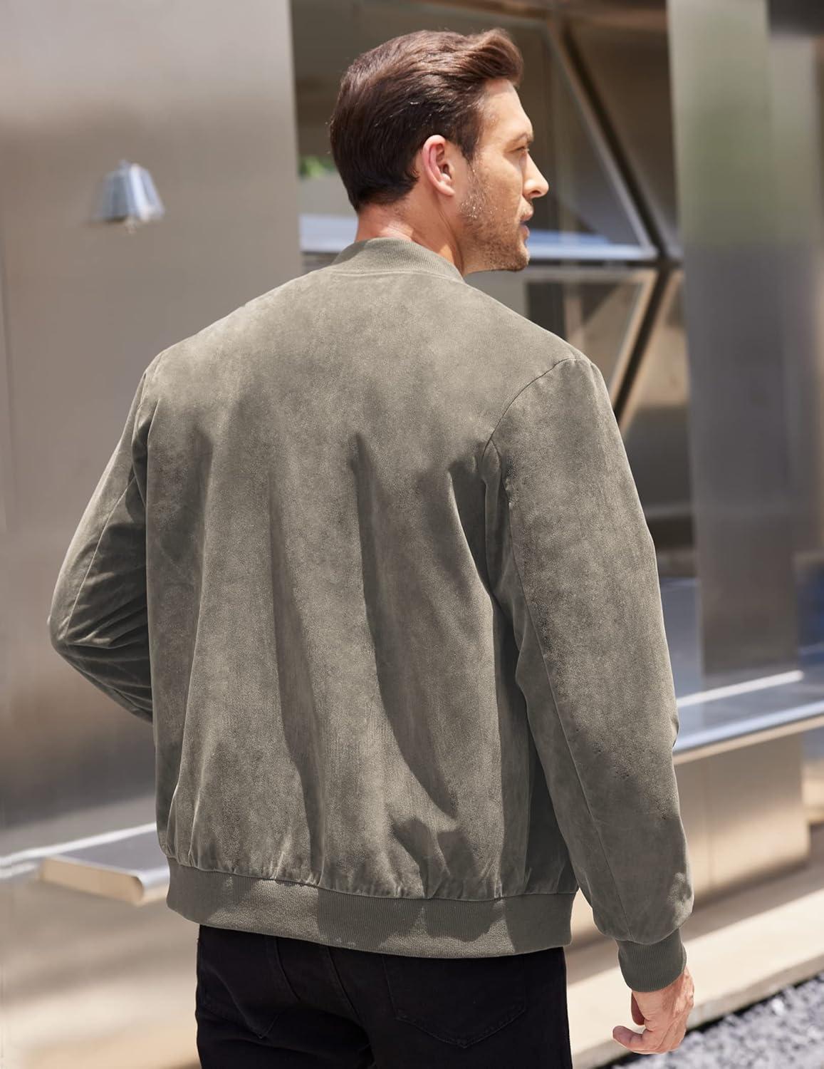 imageCOOFANDY Mens Casual Varsity Jacket Vintage Lightweight Suede Bomber JacketsGrey