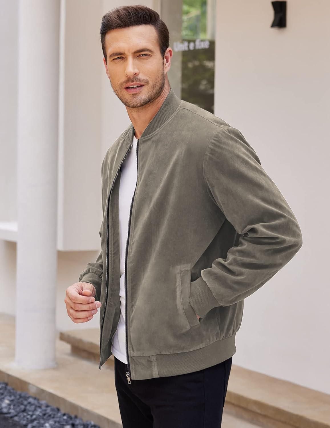 COOFANDY Men’s Casual Varsity Jacket Vintage Lightweight Suede Bomber Jackets(Green)