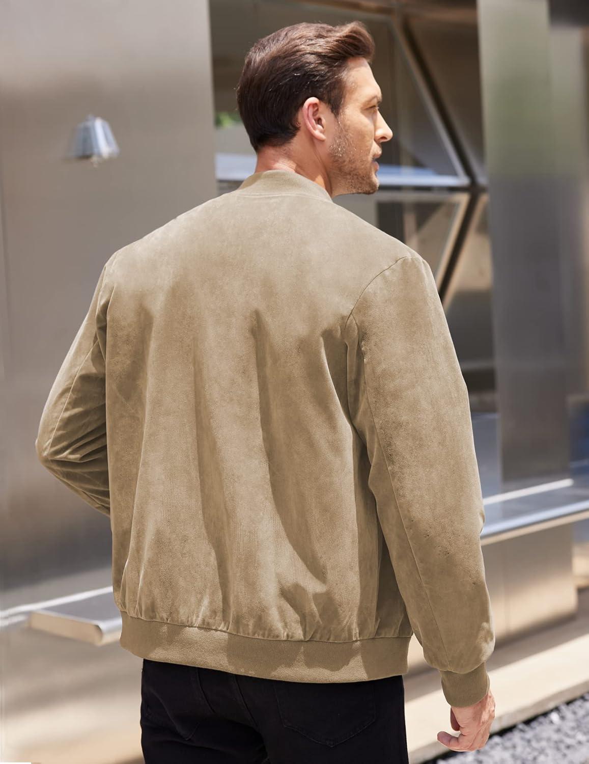 COOFANDY Men’s Casual Varsity Jacket Vintage Lightweight Suede Bomber Jackets(Khaki)