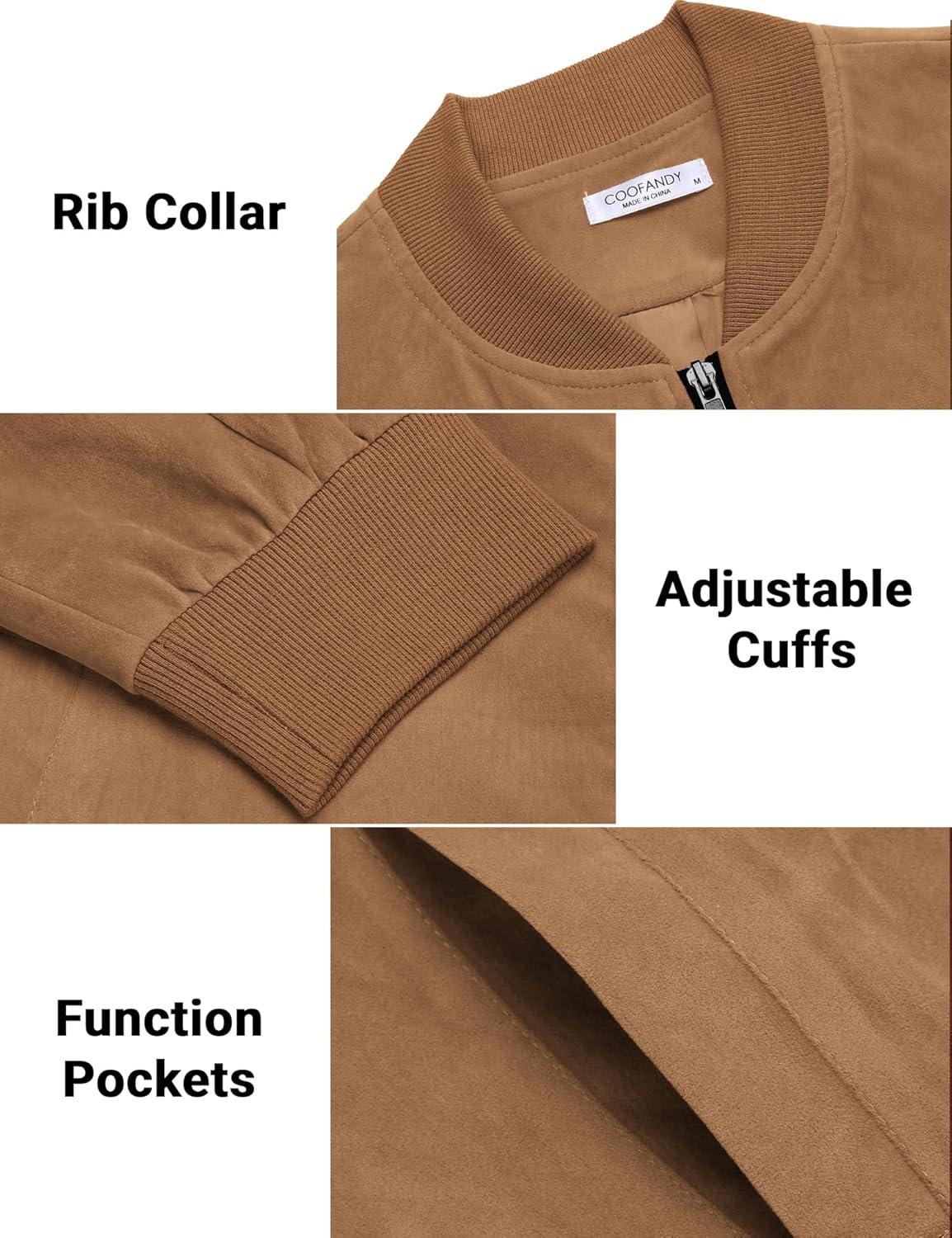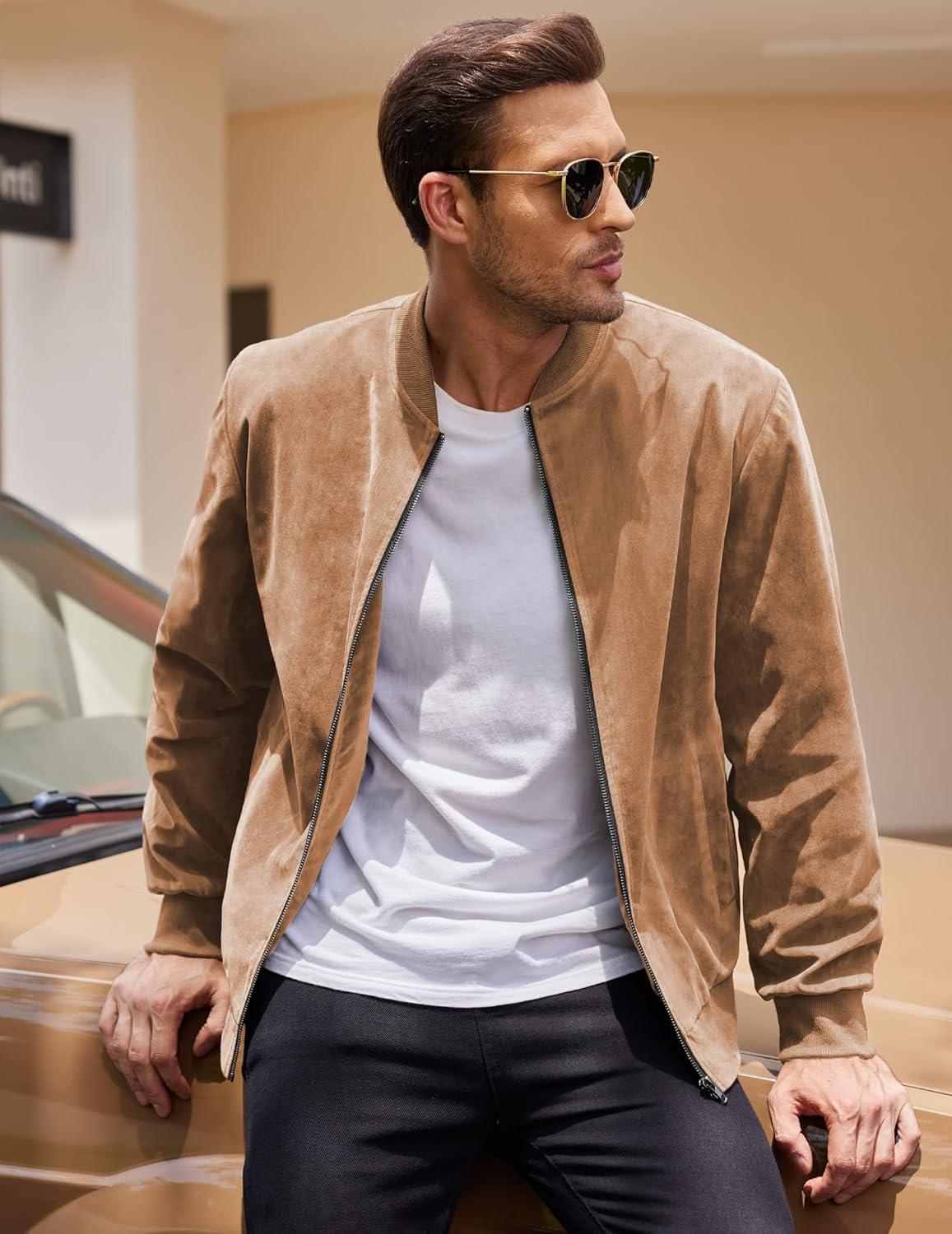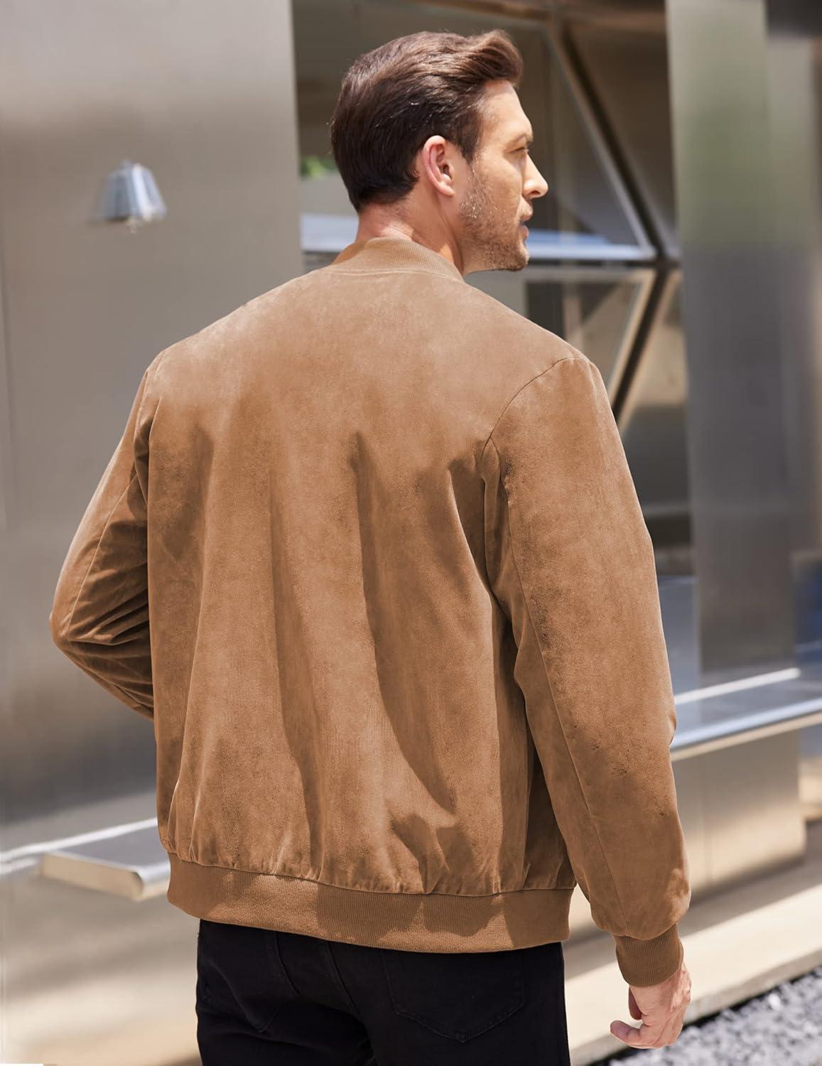 COOFANDY Men's Casual Varsity Jacket Vintage Lightweight Suede Bomber Jackets(Light Tan)