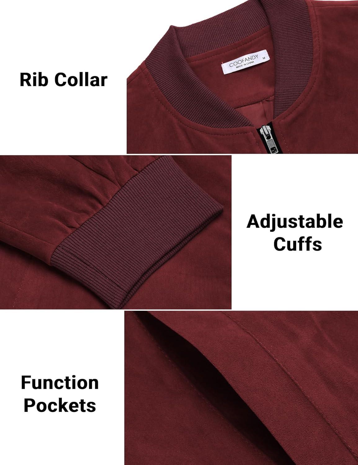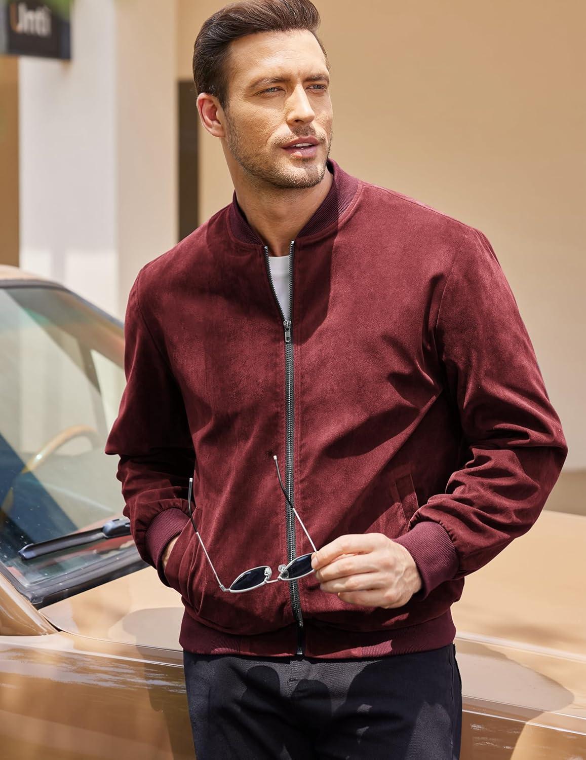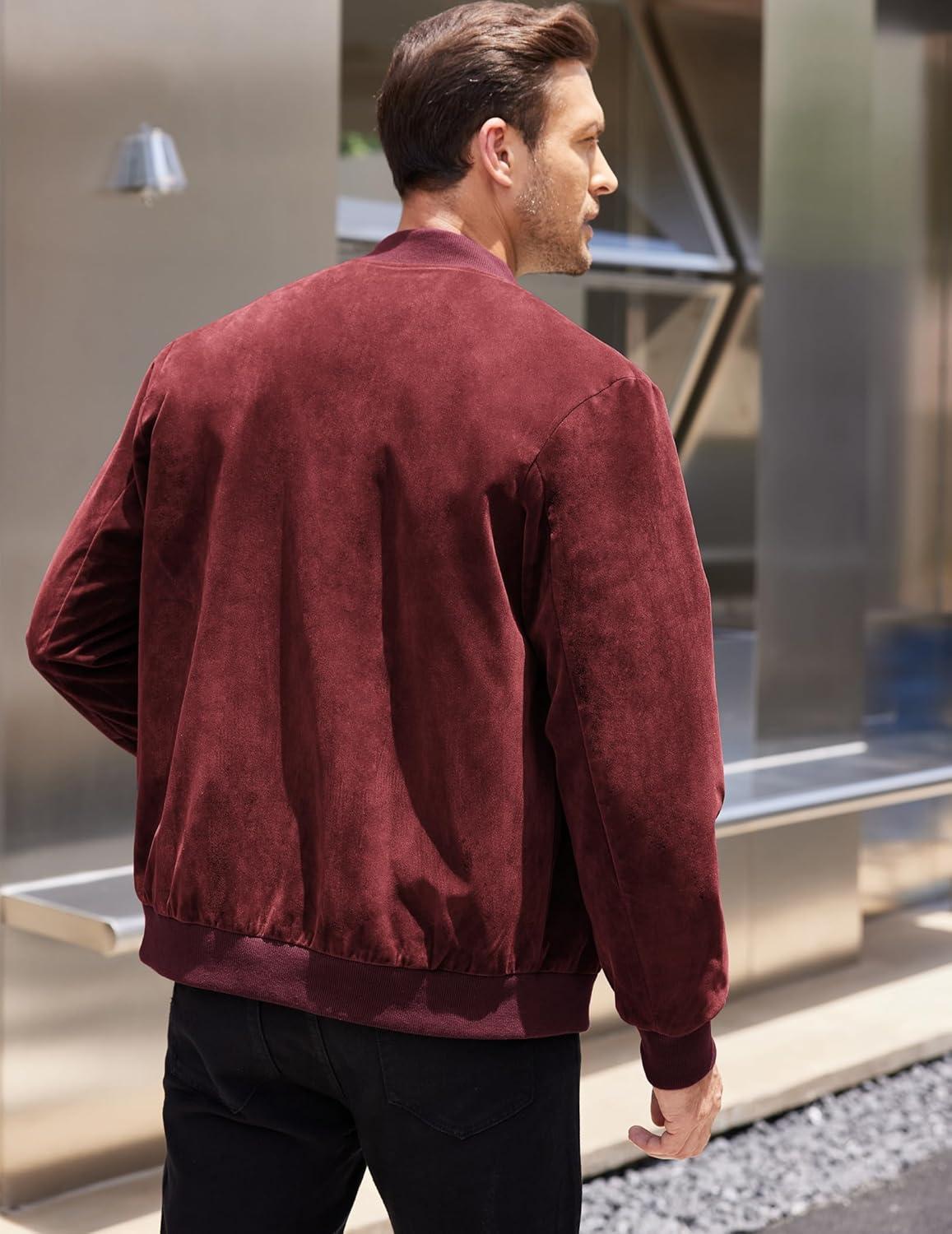 imageCOOFANDY Mens Casual Varsity Jacket Vintage Lightweight Suede Bomber JacketsRed