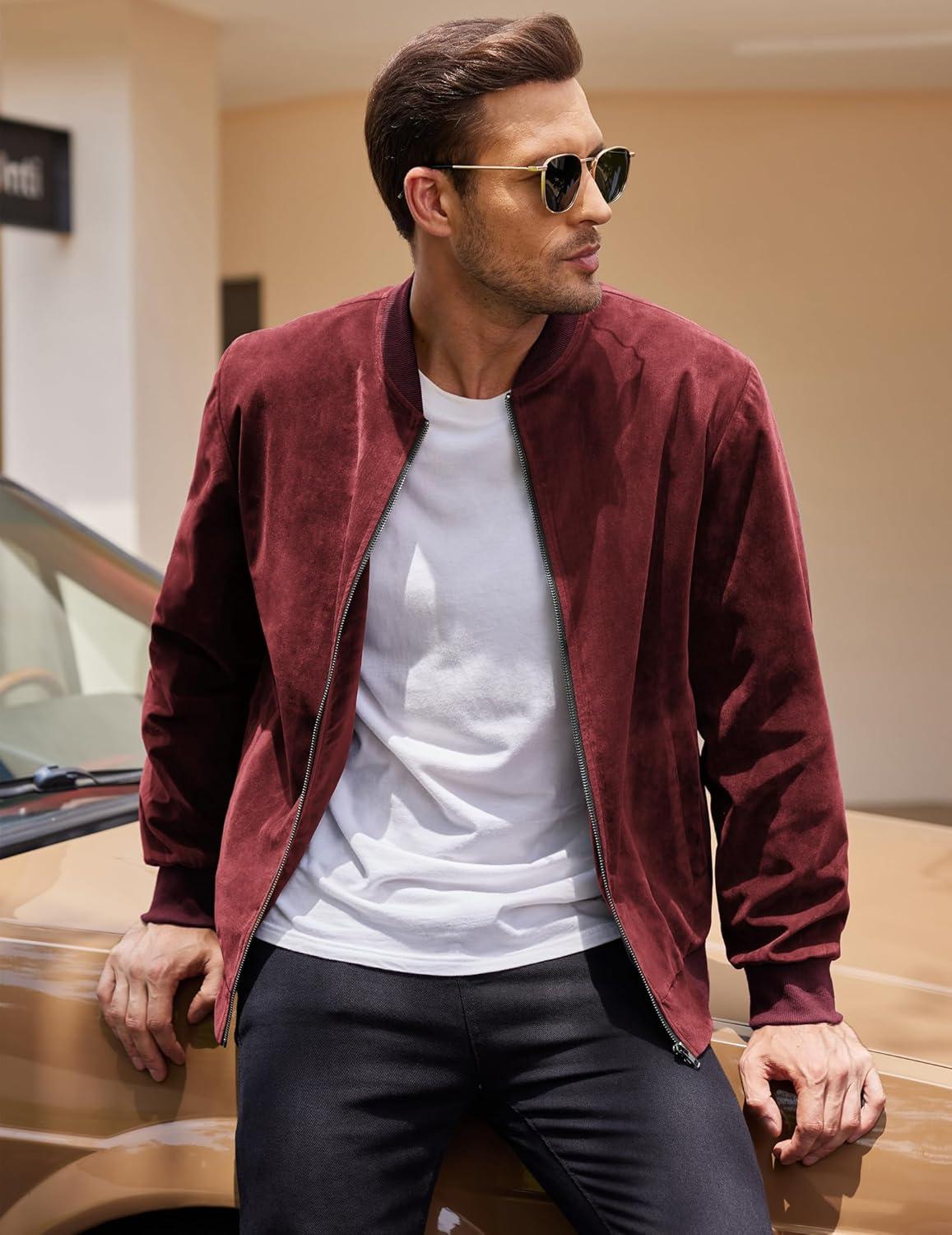 COOFANDY Men’s Casual Varsity Jacket Vintage Lightweight Suede Bomber Jackets(Red)
