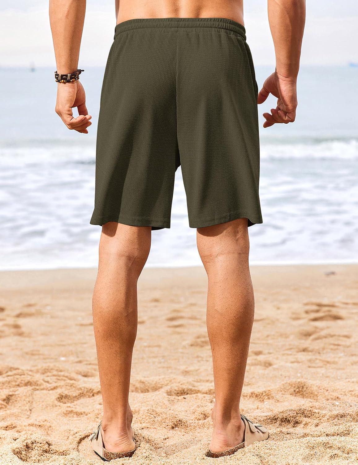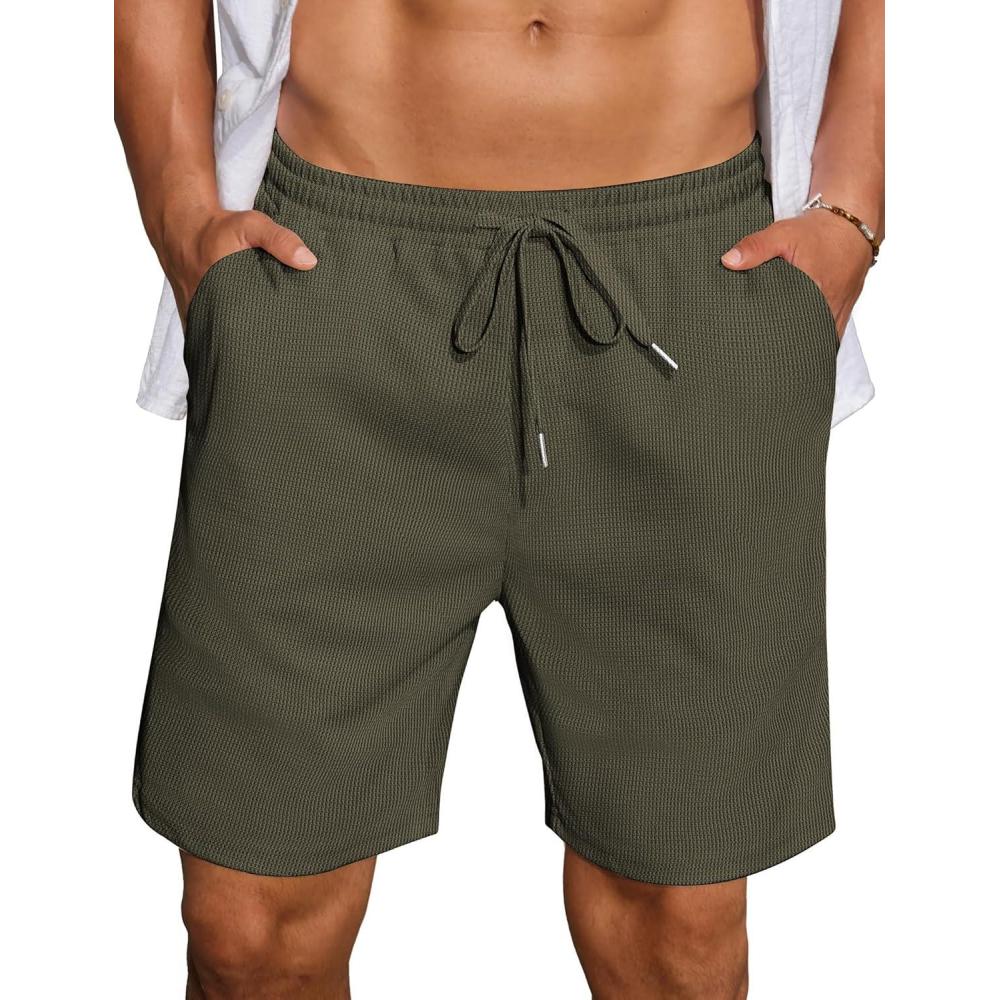 COOFANDY Mens Casual Waffle Shorts Elastic Waist Summer Beach Shorts 7" Workout Sweat Shorts(Army Green)