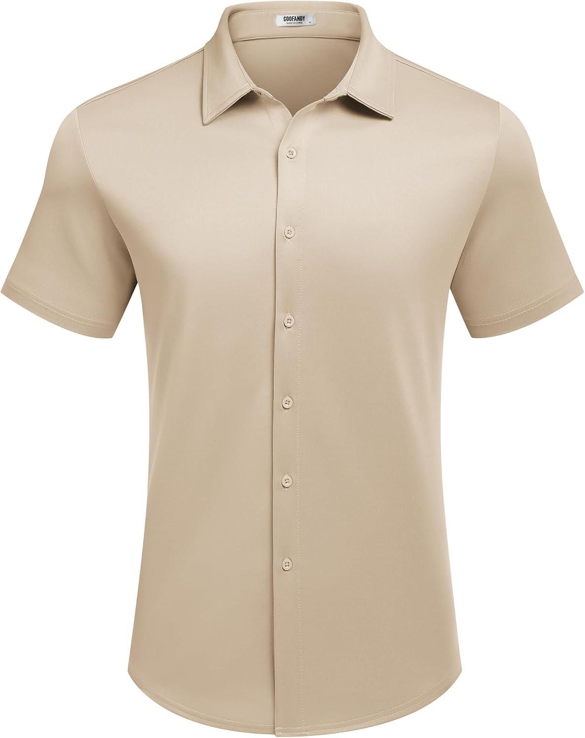 COOFANDY Mens Casual Wrinkle Free Shirts Short Sleeve Button Down Summer Stretch Dress Shirt(Khaki)