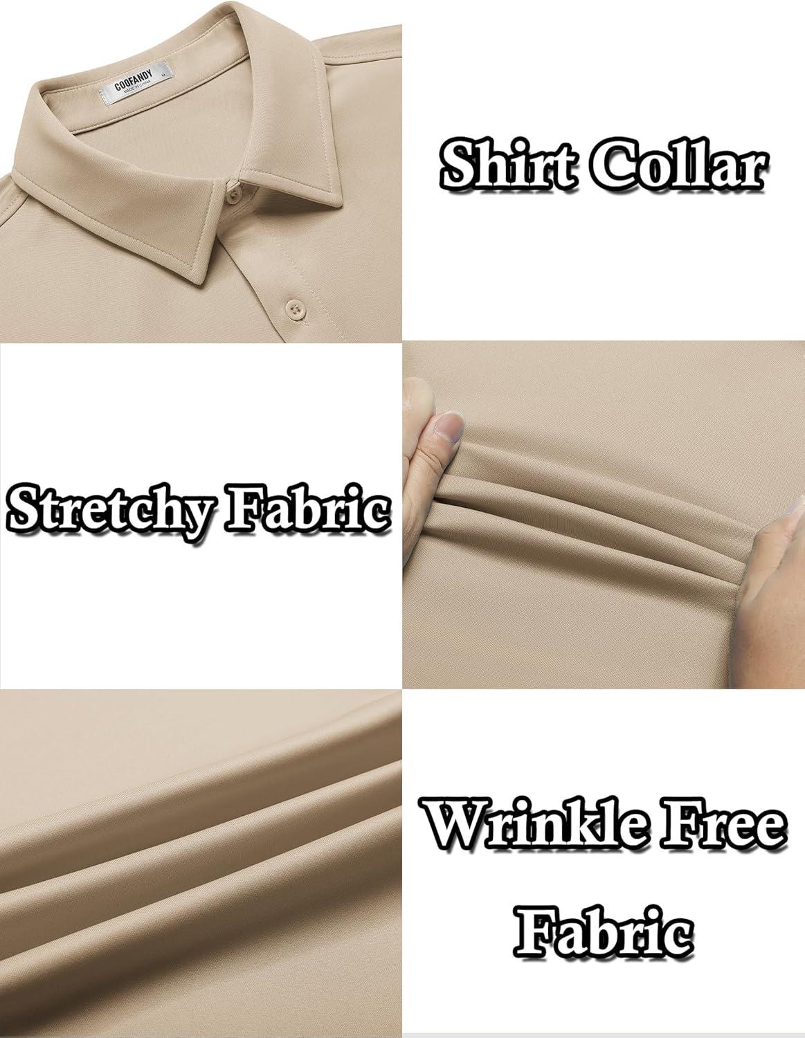 imageCOOFANDY Mens Casual Wrinkle Free Shirts Short Sleeve Button Down Summer Stretch Dress ShirtKhaki