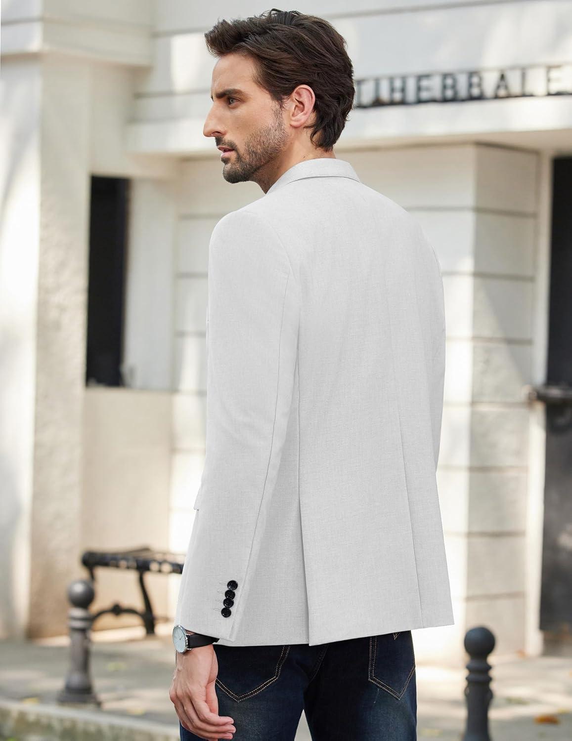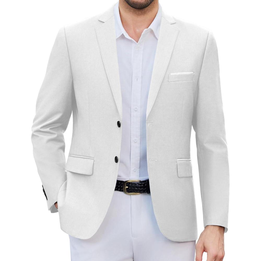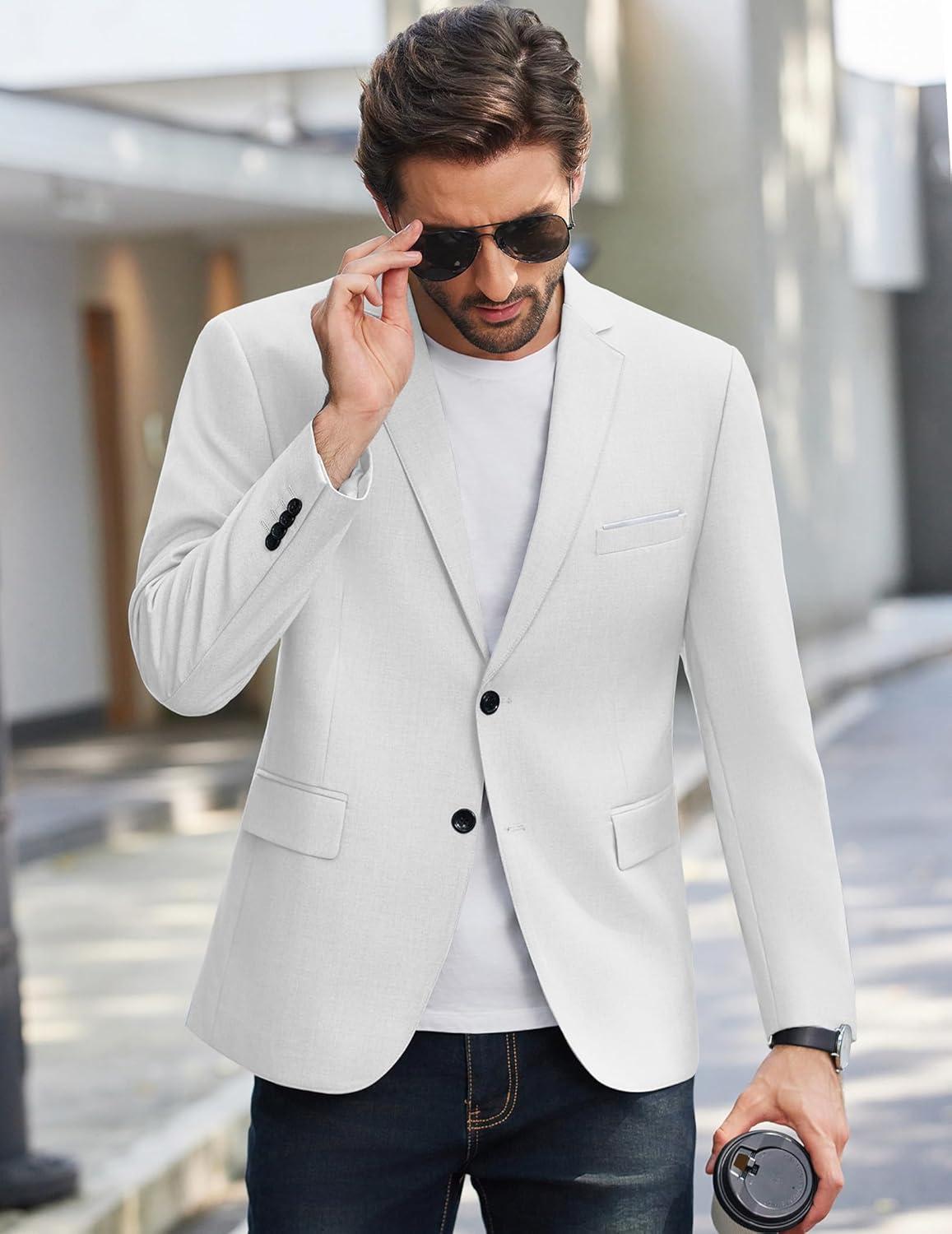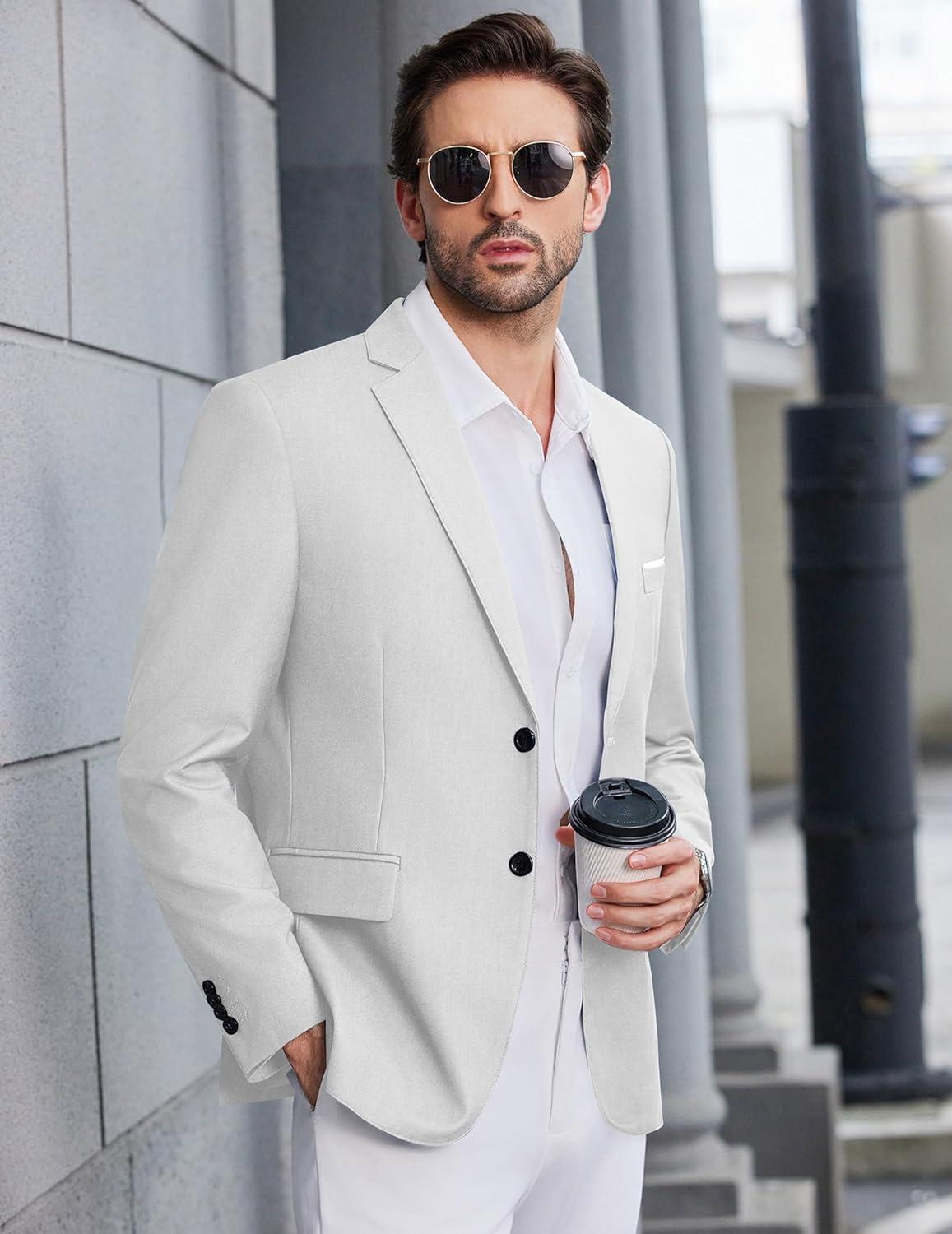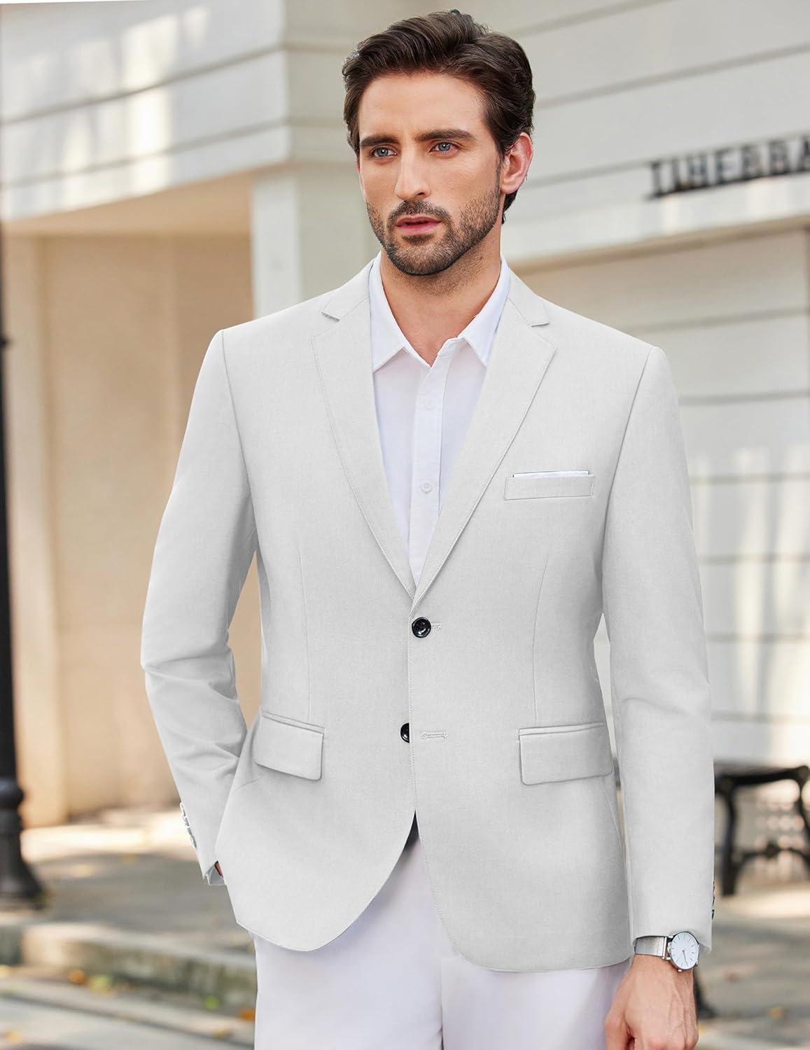 COOFANDY Mens Causal Blazer Two Button Suit Jackets Lightweight Slim Fit Sports Coats(White)