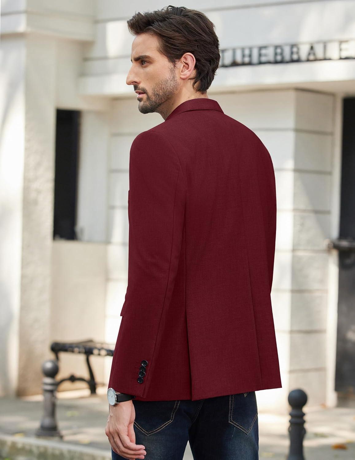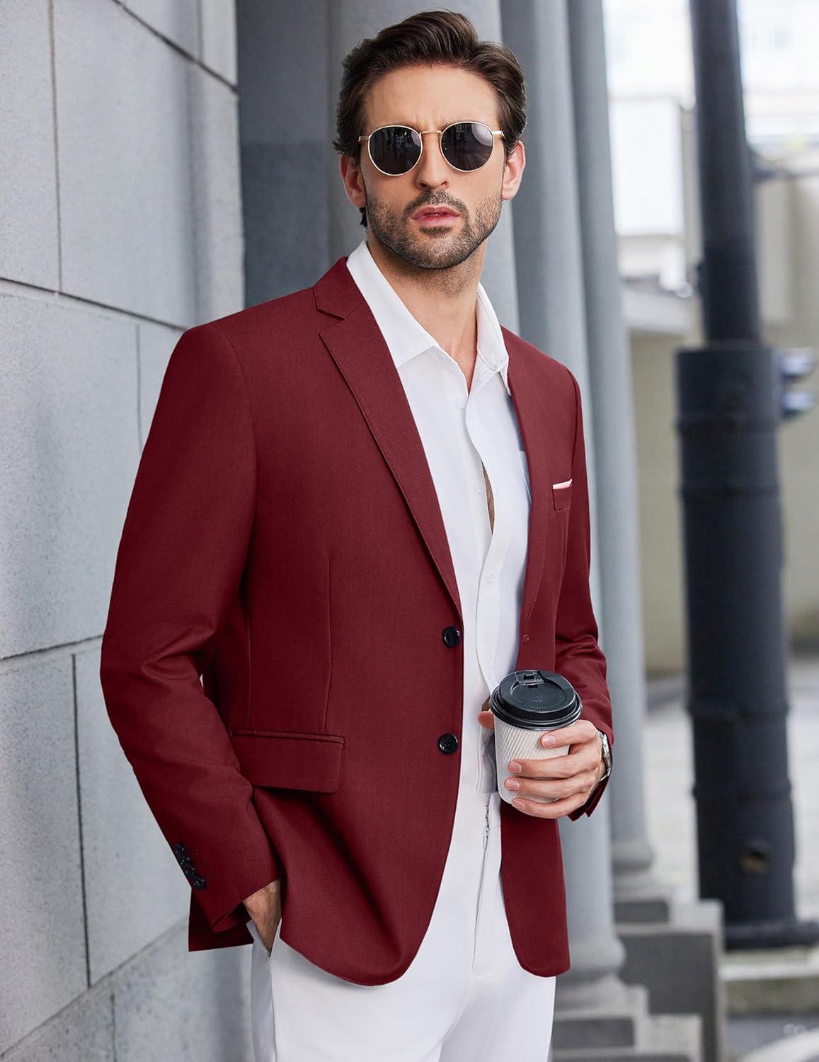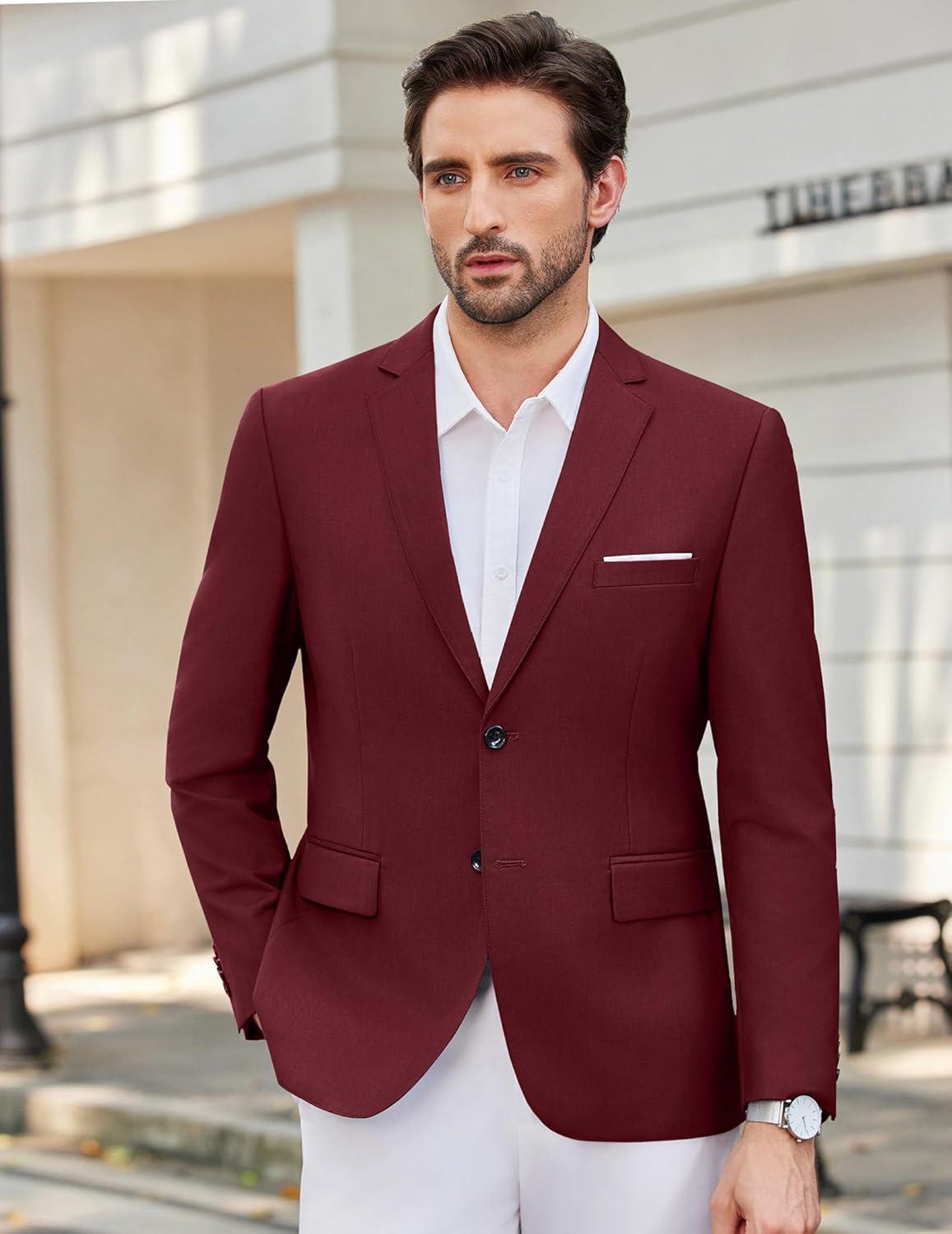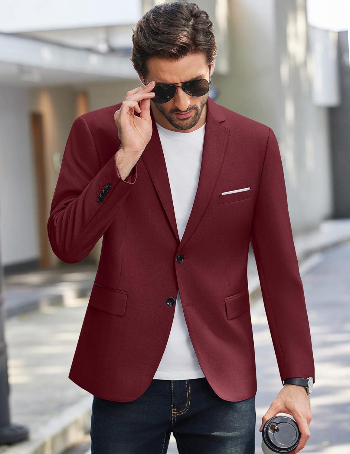 COOFANDY Mens Causal Blazer Two Button Suit Jackets Lightweight Slim Fit Sports Coats(Wine Red)