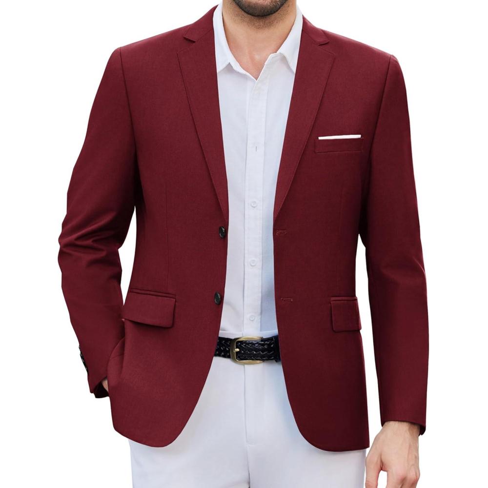 imageCOOFANDY Mens Causal Blazer Two Button Suit Jackets Lightweight Slim Fit Sports CoatsWine Red