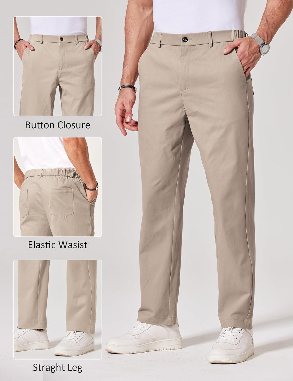 imageCOOFANDY Mens Chino Pants Casual Business Dress Pants Stretch Golf Trousers with PocketsApricot