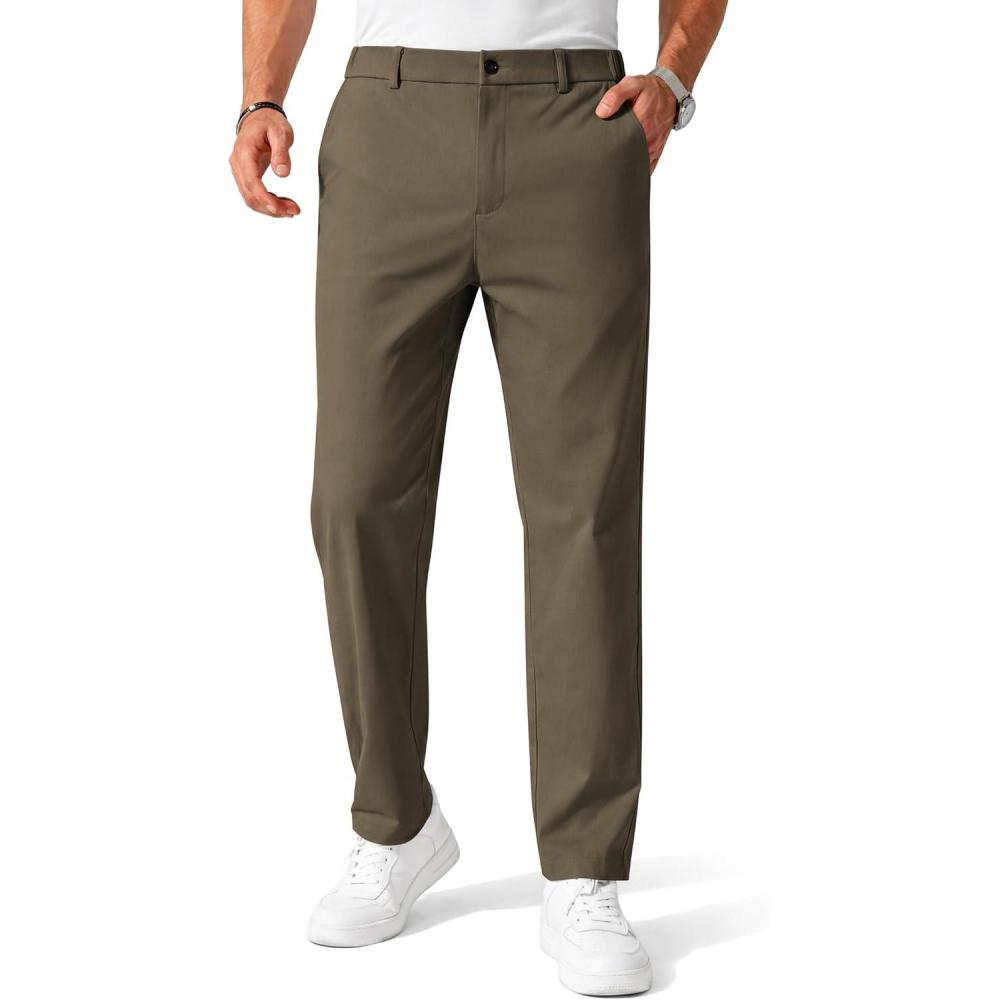 COOFANDY Mens Chino Pants Casual Business Dress Pants Stretch Golf Trousers with Pockets(Olive Green)