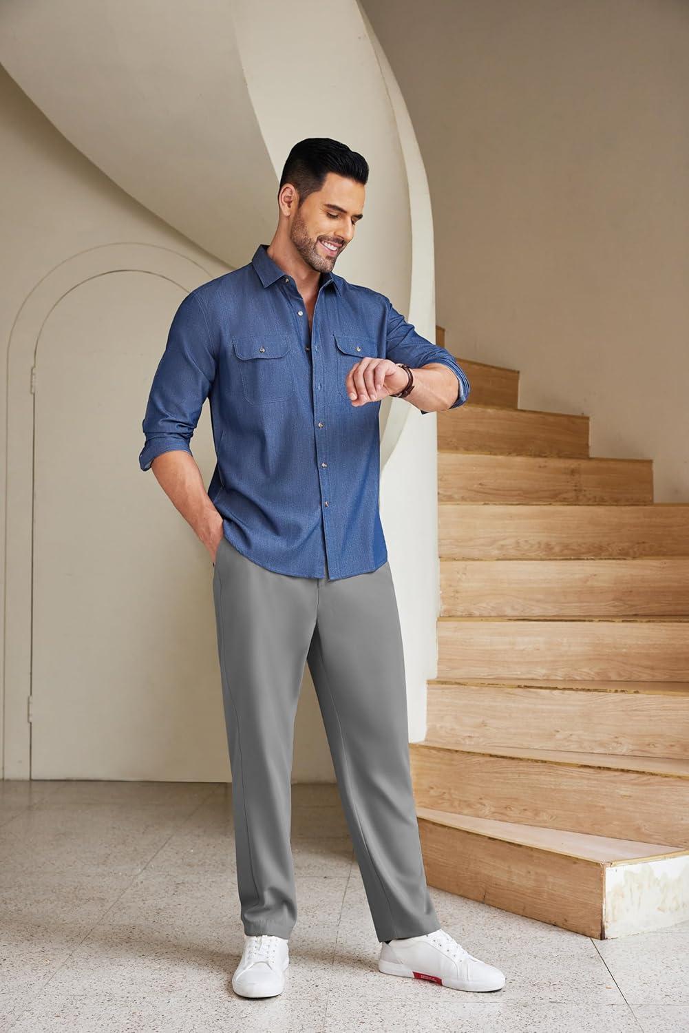 COOFANDY Men’s Chino Pants Relaxed Fit Elastic Waist Basic Flat Front Drawstring Casual Pants Dark Grey