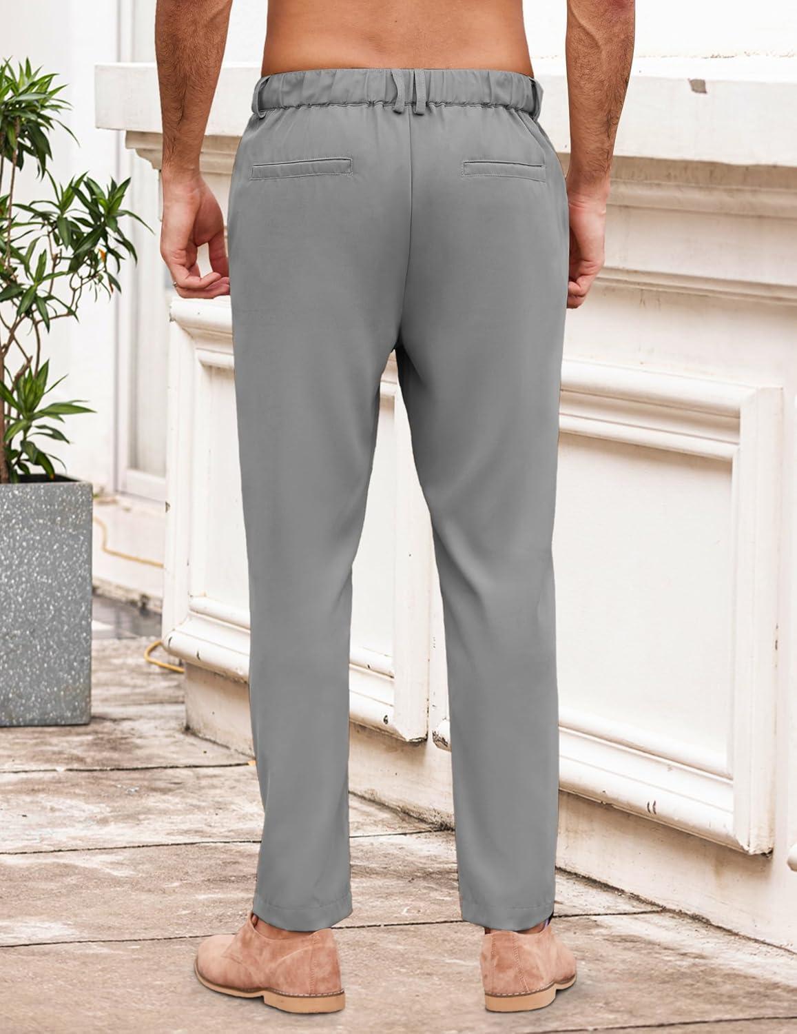 COOFANDY Men’s Cotton Linen Pants Elastic Waist Lightweight Casual Pants Relaxed Fit Yoga Beach Pants with Pockets(02-grey)