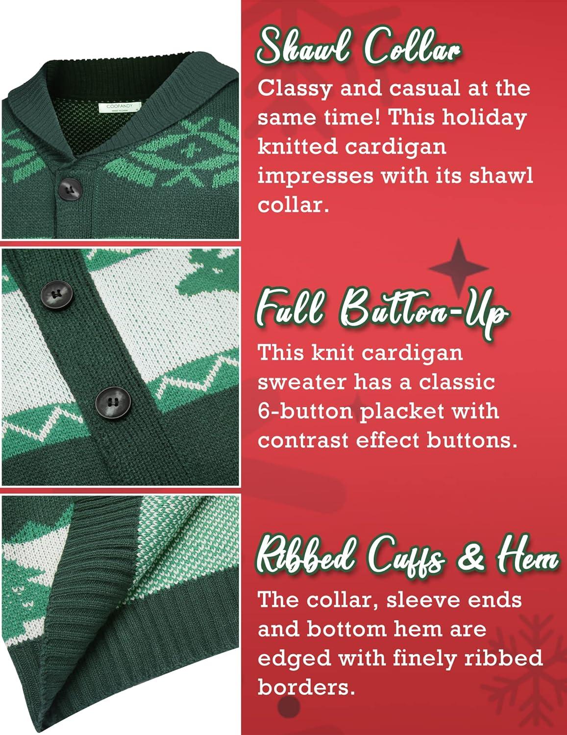 Don’t miss out on our limited-time offer: buy COOFANDY Men’s Christmas Cardigans Ugly Xmas Sweaters Reindeer Snowflake Shawl Collar Knitted Cardigan Sweater(A – Green – C), get {accessory} free!