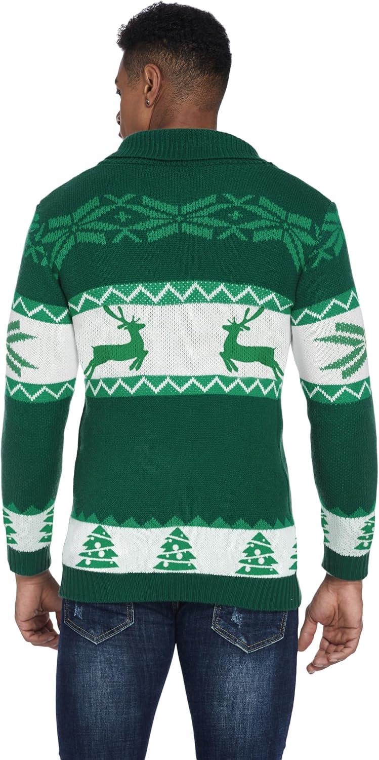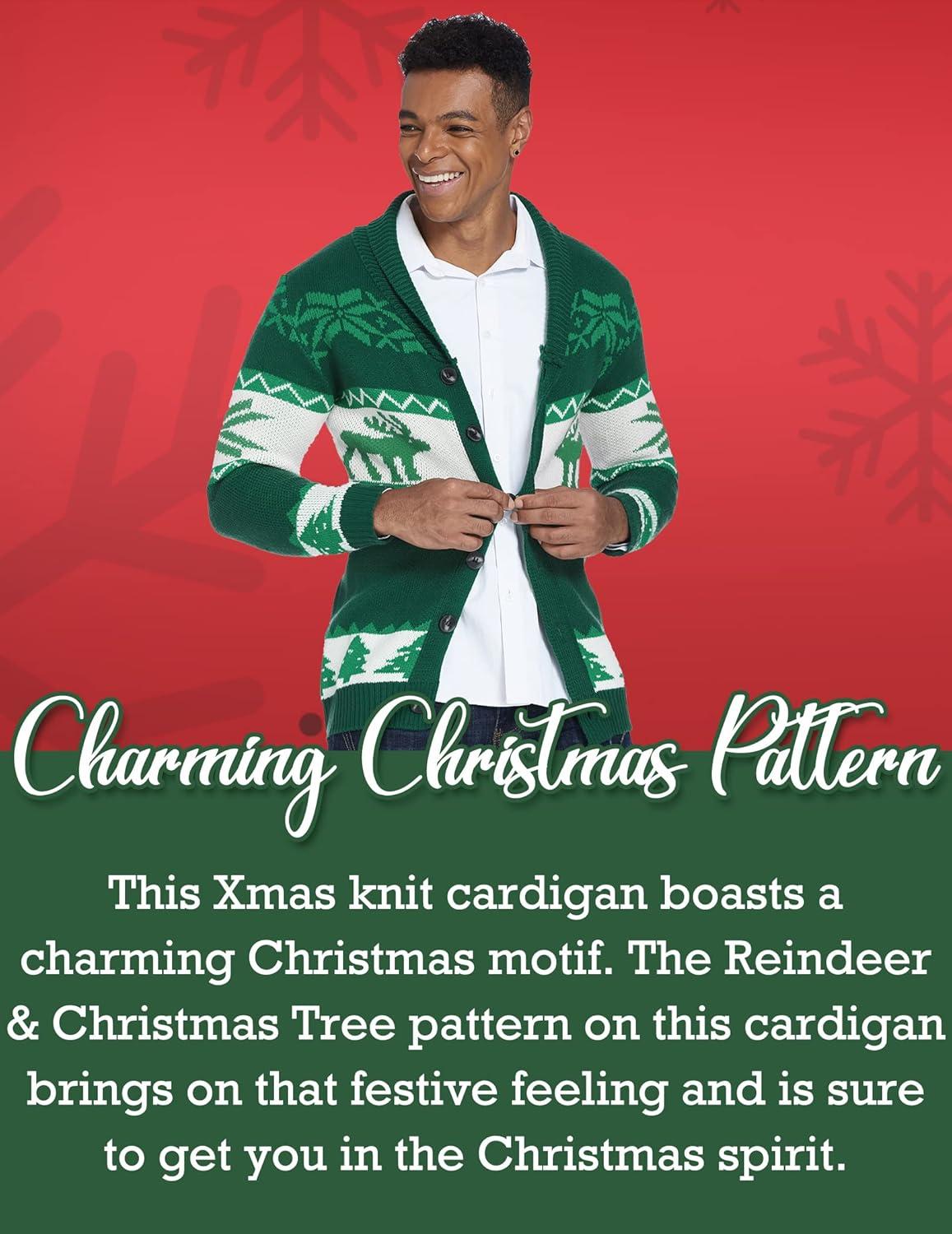 COOFANDY Men's Christmas Cardigans Ugly Xmas Sweaters Reindeer Snowflake Shawl Collar Knitted Cardigan Sweater(A - Green - C)