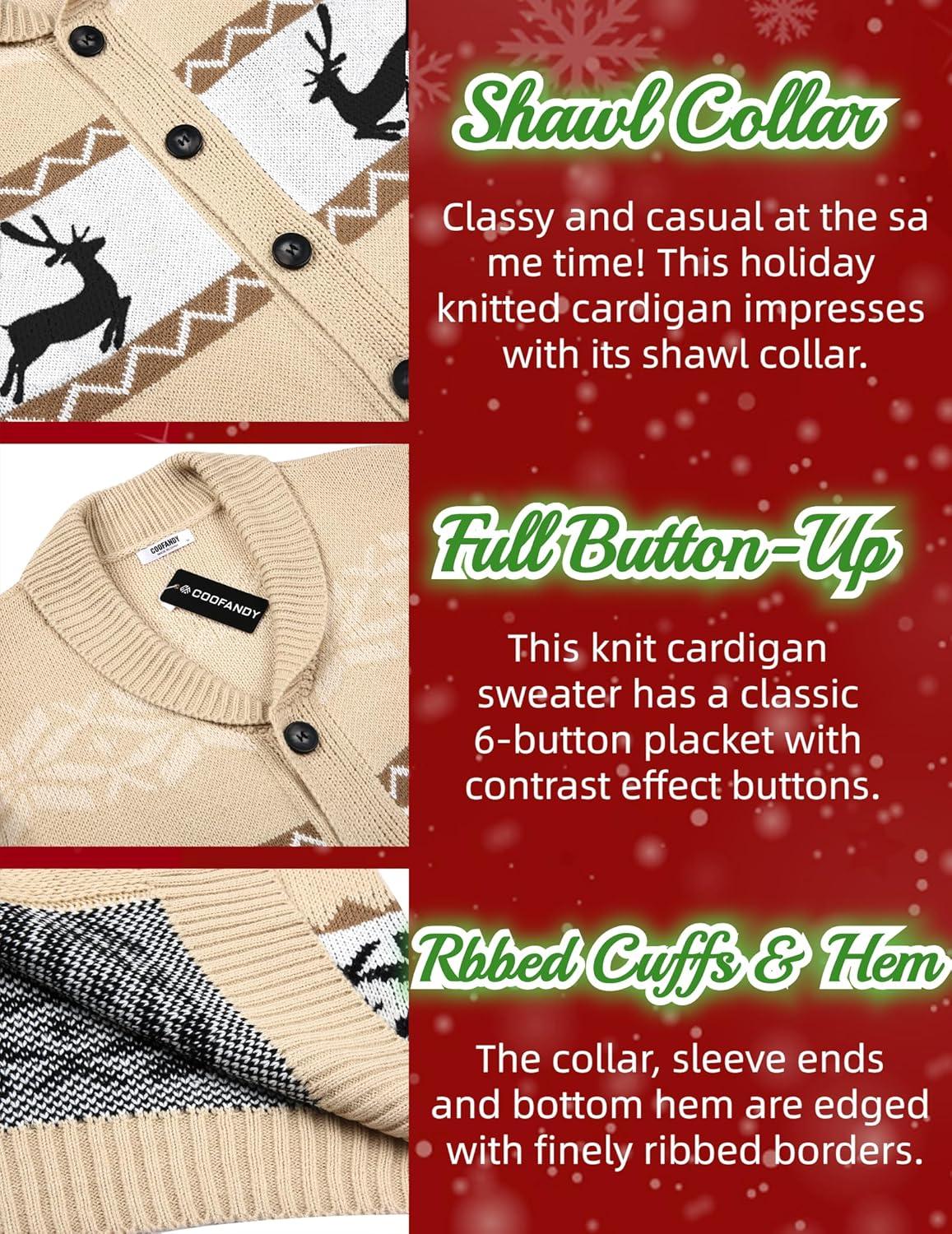 Don’t miss out on our limited-time offer: buy COOFANDY Men’s Christmas Cardigans Ugly Xmas Sweaters Reindeer Snowflake Shawl Collar Knitted Cardigan Sweater(Light Apricot), get a free {accessory}!
