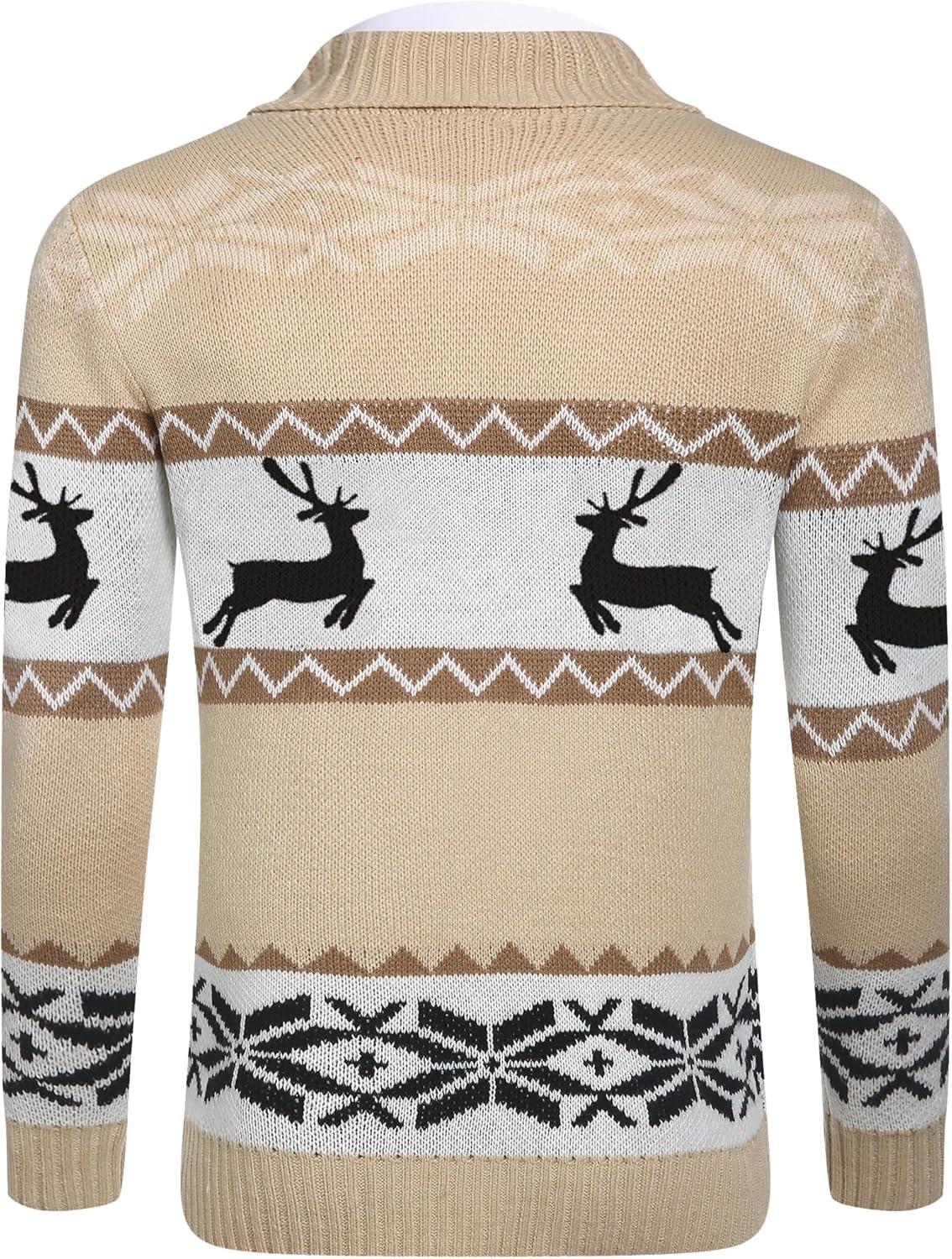 COOFANDY Men's Christmas Cardigans Ugly Xmas Sweaters Reindeer Snowflake Shawl Collar Knitted Cardigan Sweater(Light Apricot)