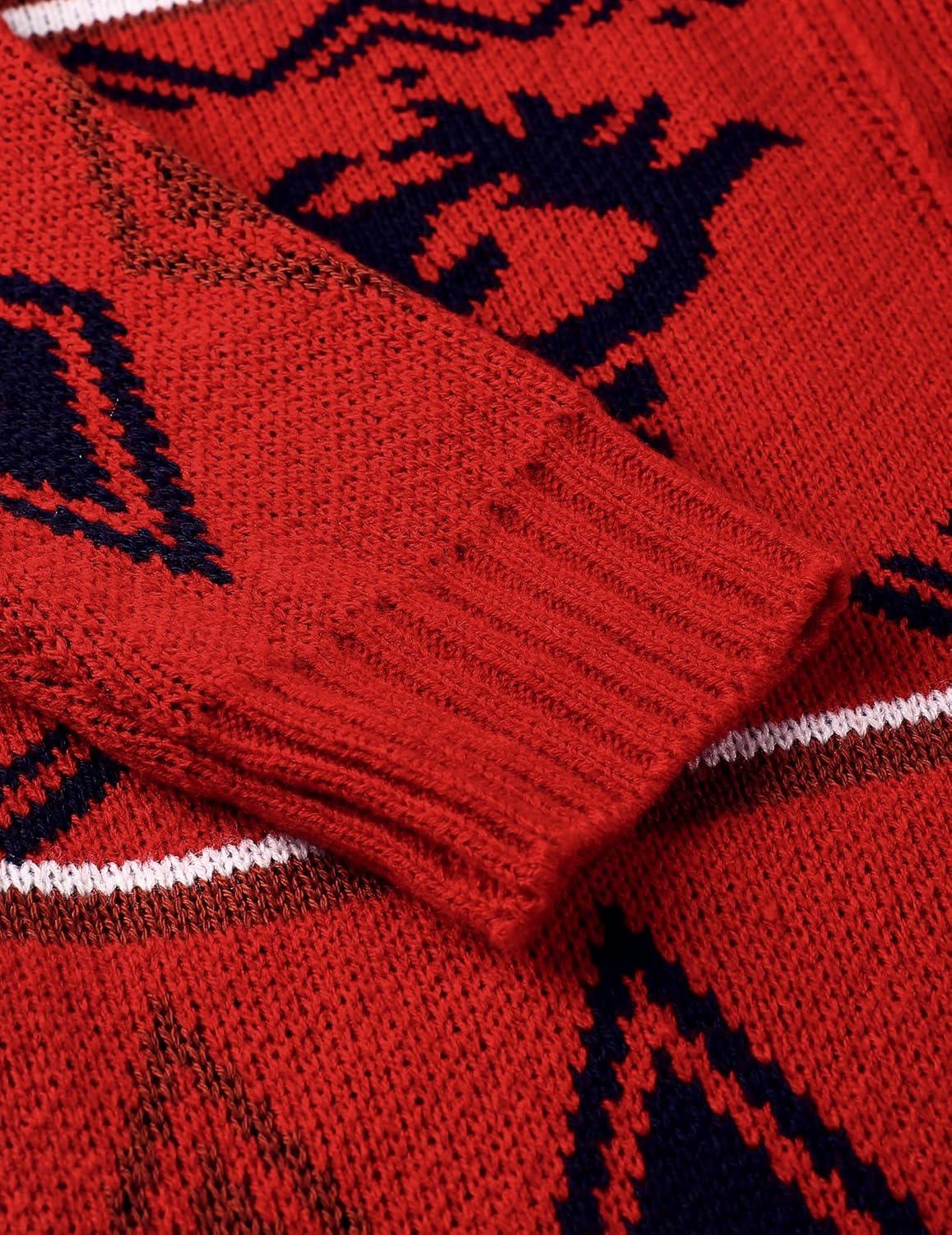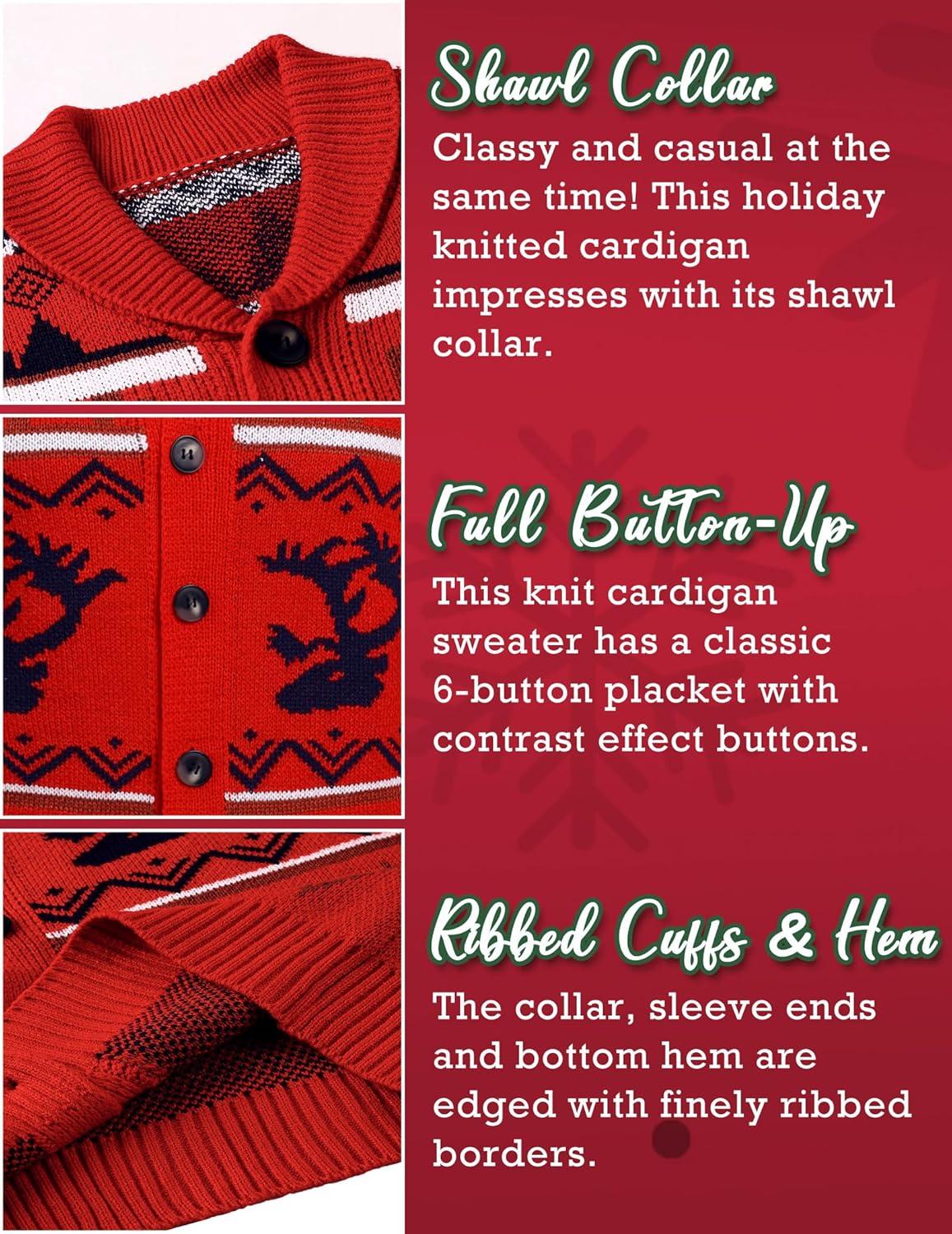COOFANDY Men's Christmas Cardigans Ugly Xmas Sweaters Reindeer Snowflake Shawl Collar Knitted Cardigan Sweater(Red Elk)