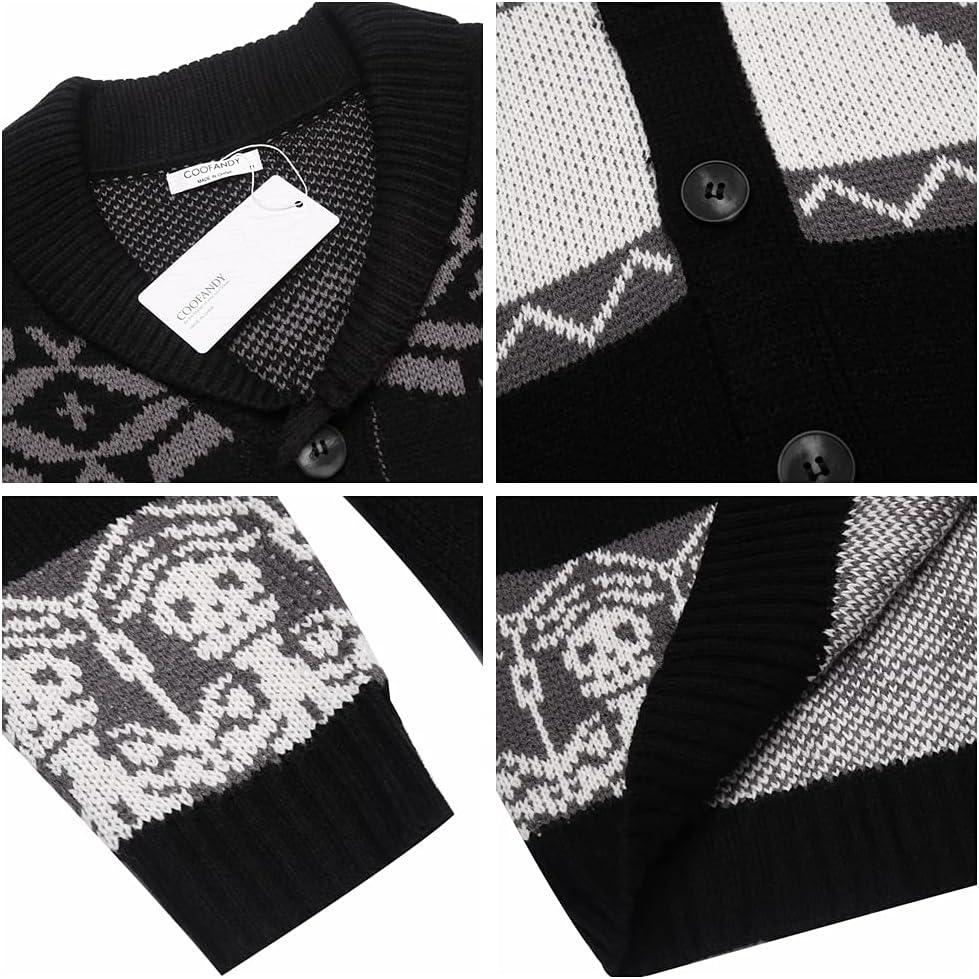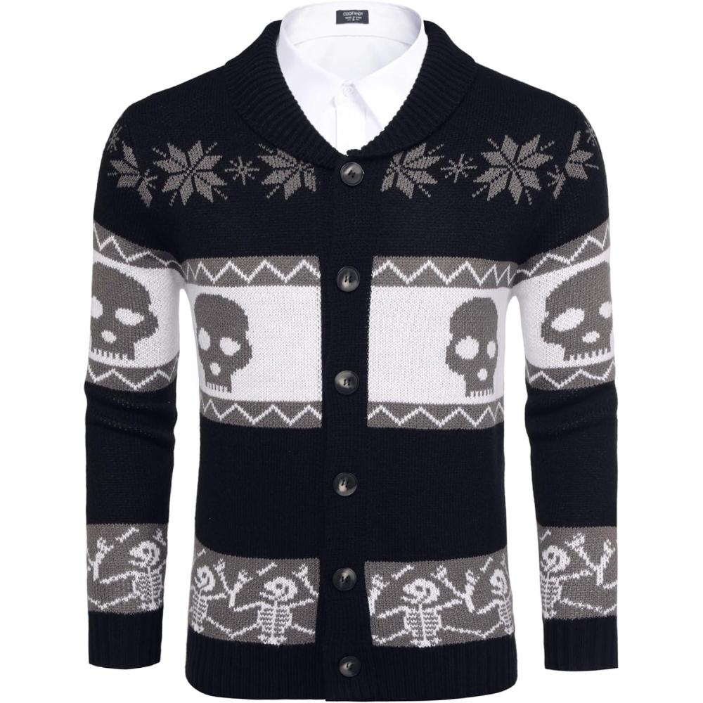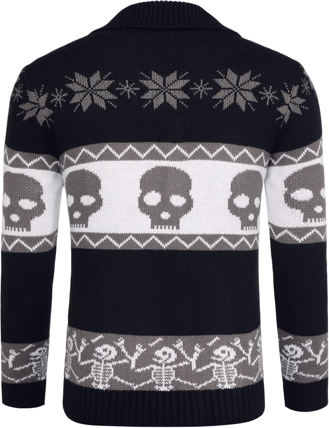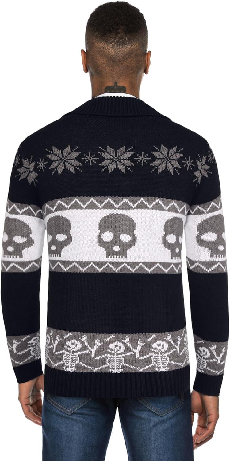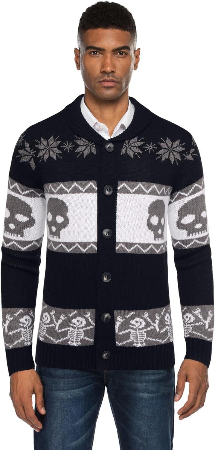 COOFANDY Men’s Christmas Cardigans Ugly Xmas Sweaters Reindeer Snowflake Shawl Collar Knitted Cardigan Sweater(Skeleton)